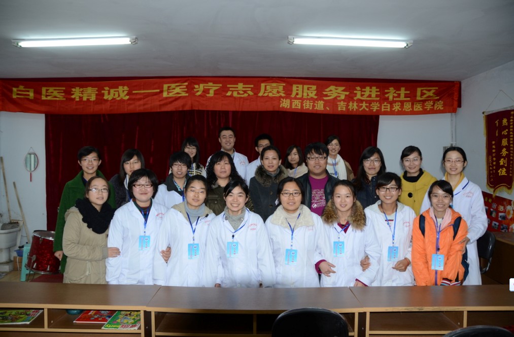 11月12日下午,吉林大学白求恩医学院与湖西街道办事处共同开展“纪念白求恩逝世72周年”系列活动之“白医精诚——医疗志愿服务进社区”活动。吉林大学白求恩医学院社会实践指导老师魏宇航、白求恩青年志愿者协会宣讲队队员、医疗队队员、湖西街道工作人员以及社区居民参与了本次活动。