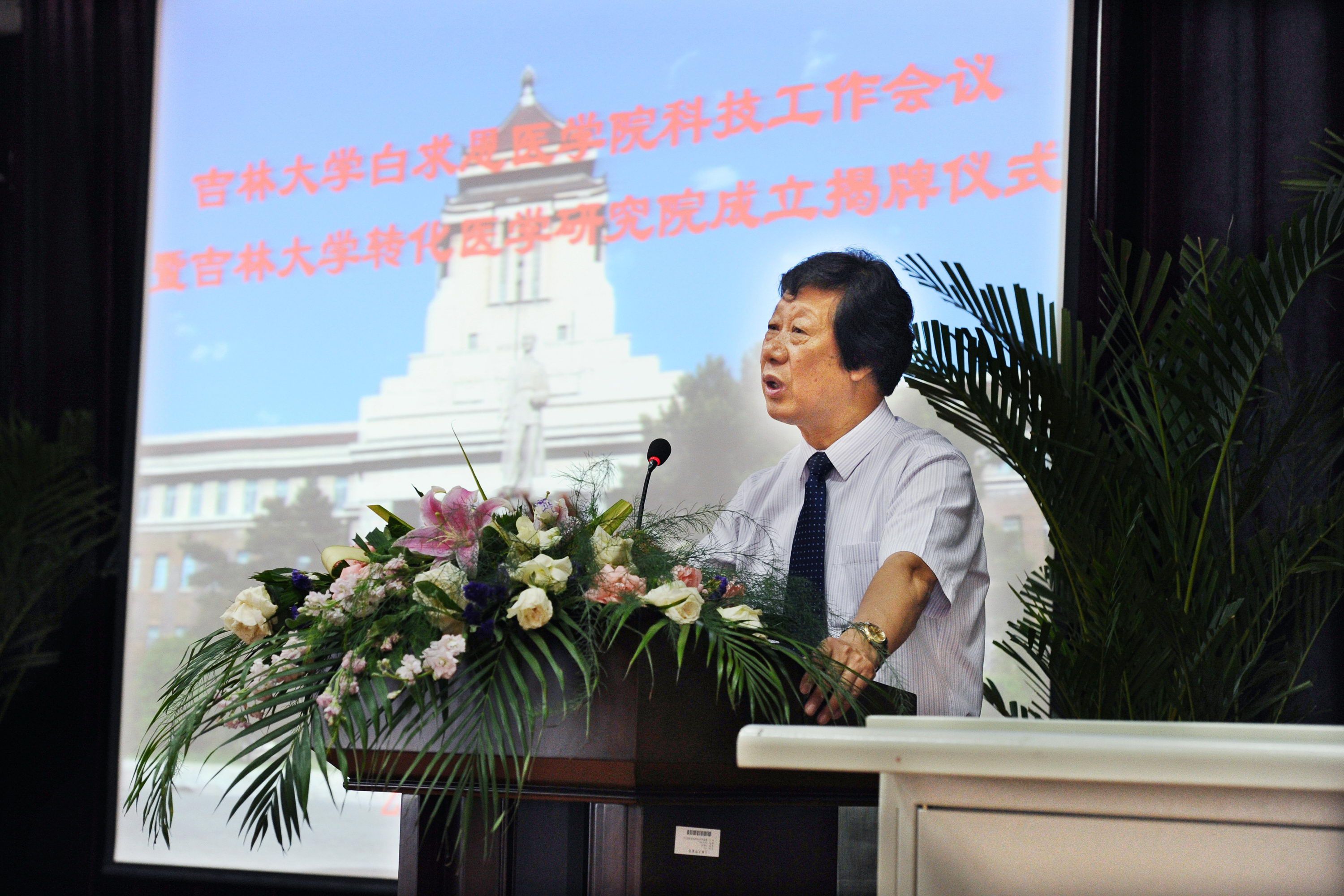 揭牌仪式后,白求恩医学院院长、吉林大学转化医学研究院院长李玉林教授发表讲话。李玉林教授指出,“转化医学”旨在跨越基础医学与药物研发、临床医学之间的鸿沟,在实验室与病房之间架起一条双向通道,将医学基础研究成果有效地转化为可在临床实际应用的理论、技术、方法和药物,代表着当今医学院快速发展的新趋势。