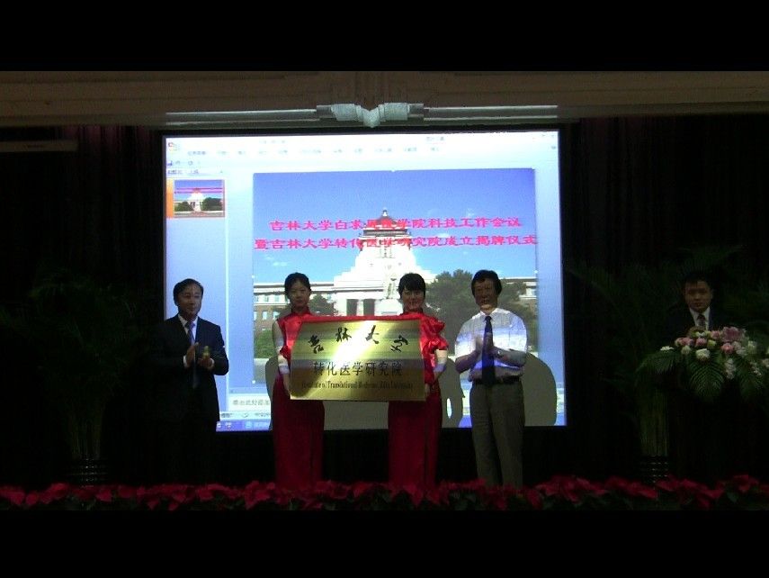 大会首先进行了吉林大学转化医学研究院成立揭牌仪式。白求恩医学院党委书记屈英和宣读了中共吉林大学第十三届委员会第17次常委会决议《关于成立吉林大学转化医学研究院的决定》。之后,吉林大学常务副校长赵继与白求恩医学院院长、吉林大学转化医学研究院院长李玉林共同为吉林大学转化医学研究院揭牌。