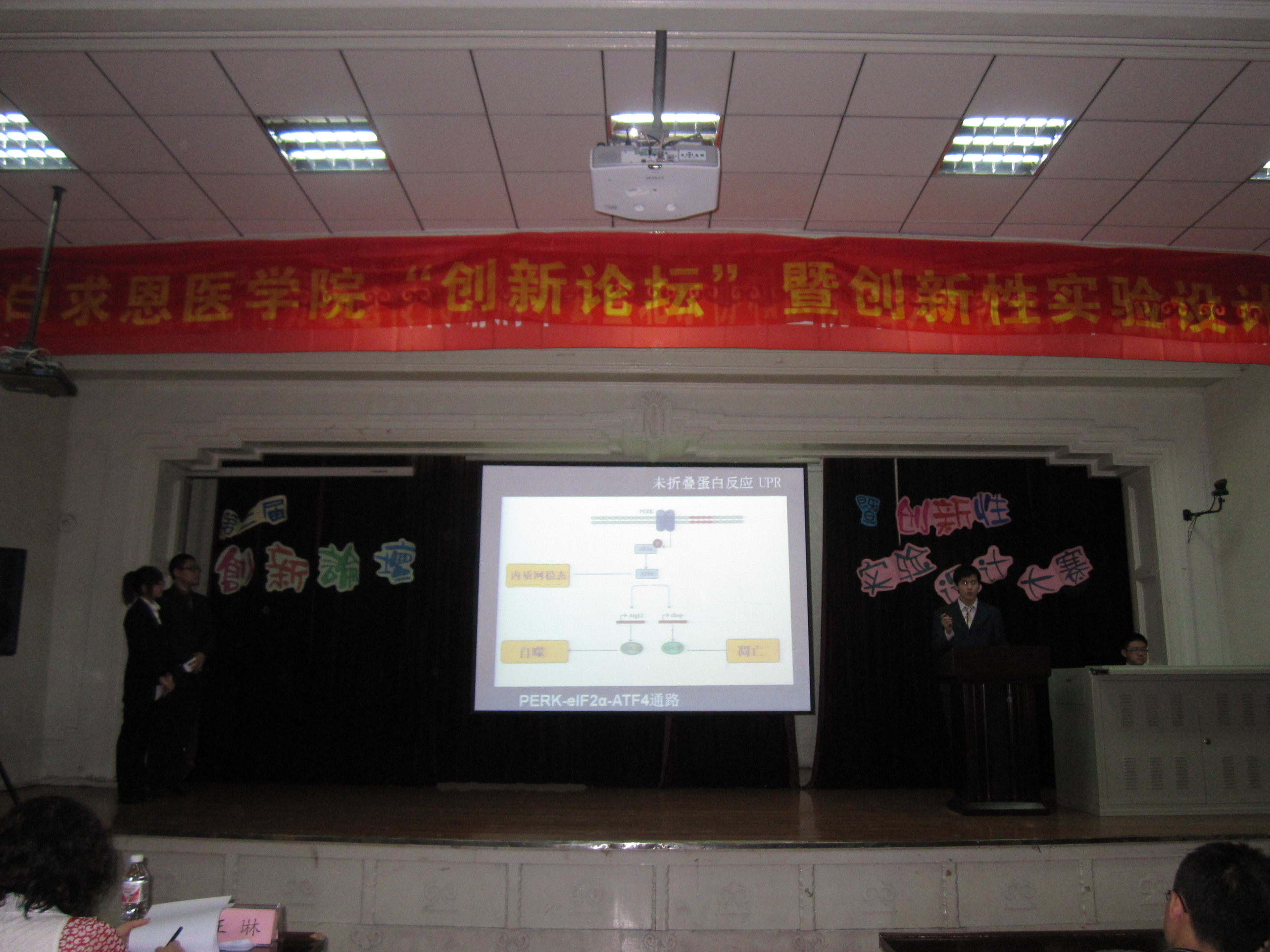 5月24日18时,白求恩医学院在新民校区基础楼二楼多功能学术报告厅举办了第二届创新论坛暨创新性实验设计大赛,大赛邀请了白求恩医学院常务副院长孙连坤教授,院长助理、实验中心主任陈霞教授,病原生物学系主任王丽教授,病理学系王琳教授出席并担任评委,学院团委书记夏燕来作为嘉宾参加了大赛。