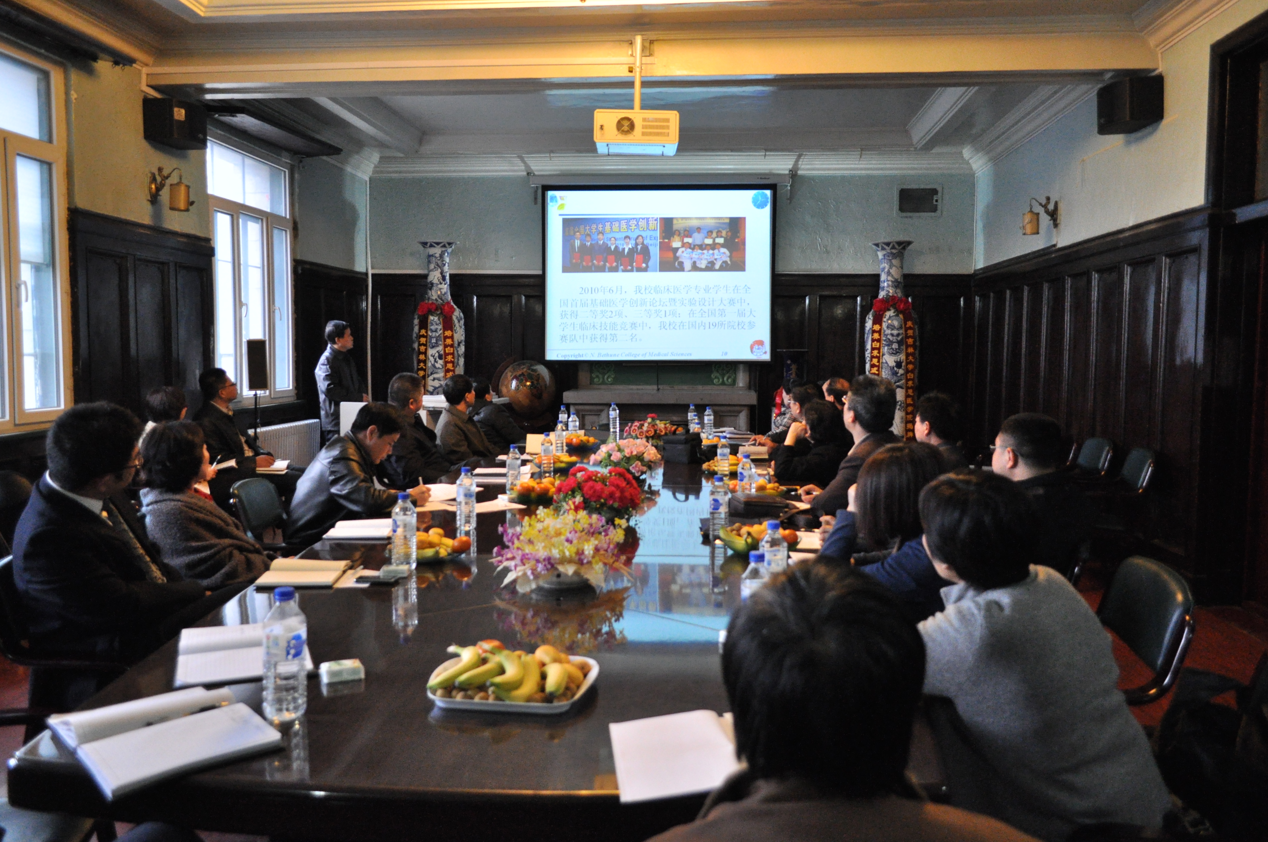 白求恩医学院常务副院长孙连坤首先对学院概况及学院在教学、科研、师资队伍、人才培养、学科建设等工作中取得的成果做了简要概括。随后,白求恩医学院党委书记屈英和介绍了学院“十二五”发展规划(初稿)的形成和内容。白求恩医学院党委副书记兼副院长苑锐以“弘扬白求恩精神拓展医学生素质”为主线,详细介绍了学院在白求恩精神传承、校园文化建设、组织社会实践等方面的举措。白求恩医学院行政副院长韩丽华介绍了综合治理和后勤管理等方面的工作。