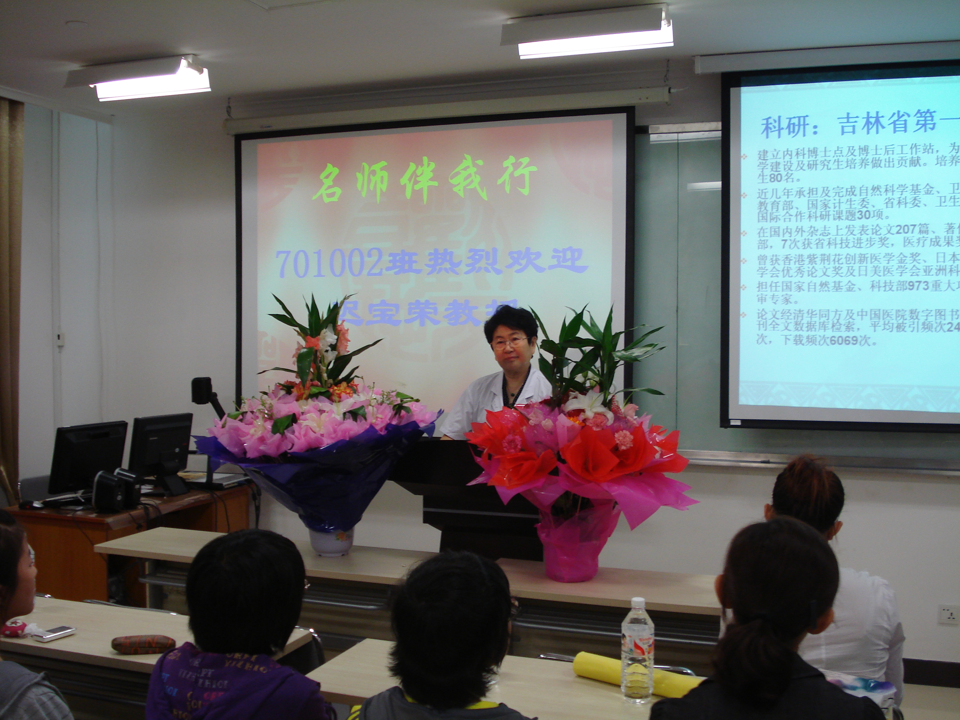 9月11日上午9时,吉林大学白求恩第一医院博士生导师、一级主任医师、内科教授、全国优秀教师、吉林大学学位委员会副主任、吉林省高级专家、701002班“名师班主任”迟宝荣教授组织所带班级同学参观了吉林大学白求恩第一医院,并与同学们亲切交流。