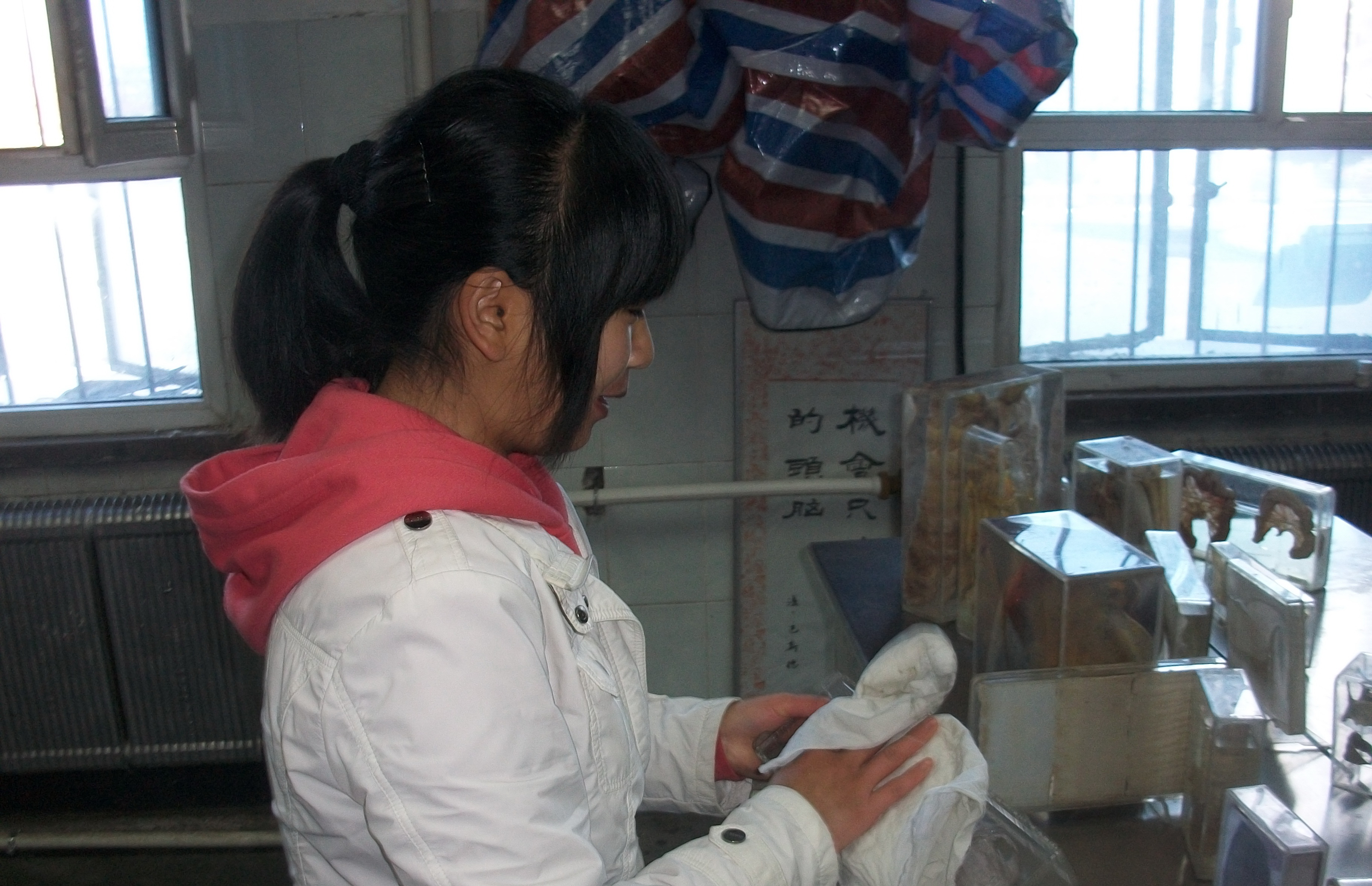 4月10日上午,白求恩医学院第二届“尊师重道,敬学知礼”活动在新民校区基础楼拉开序幕,2009级临床医学五年制全体同学来到了人体解剖学系进行卫生清扫活动。人体解剖学实验室里的标本盒被同学们小心仔细地擦拭着,玻璃窗也很快的明亮起来,到处都可看到同学们忙碌的身影。
