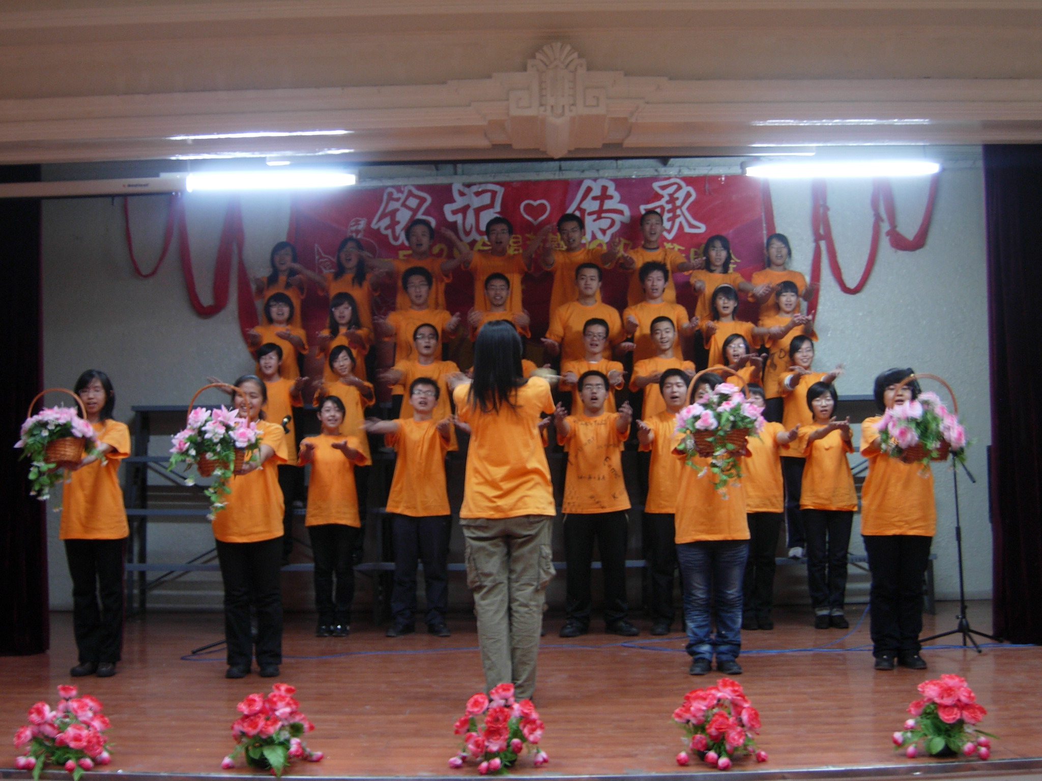 晚会在我院Angel梦舞蹈团表演的舞蹈《开门红》的热烈气氛中拉开帷幕,09级各班所献上的一首首激情洋溢的经典红歌更掀起了晚会一个又一个的高潮。随后,富有激情的舞蹈、温婉动听的歌声、极具创意的广播操,青春飞扬,魅力四射,展现出了当代大学生的无限风采!