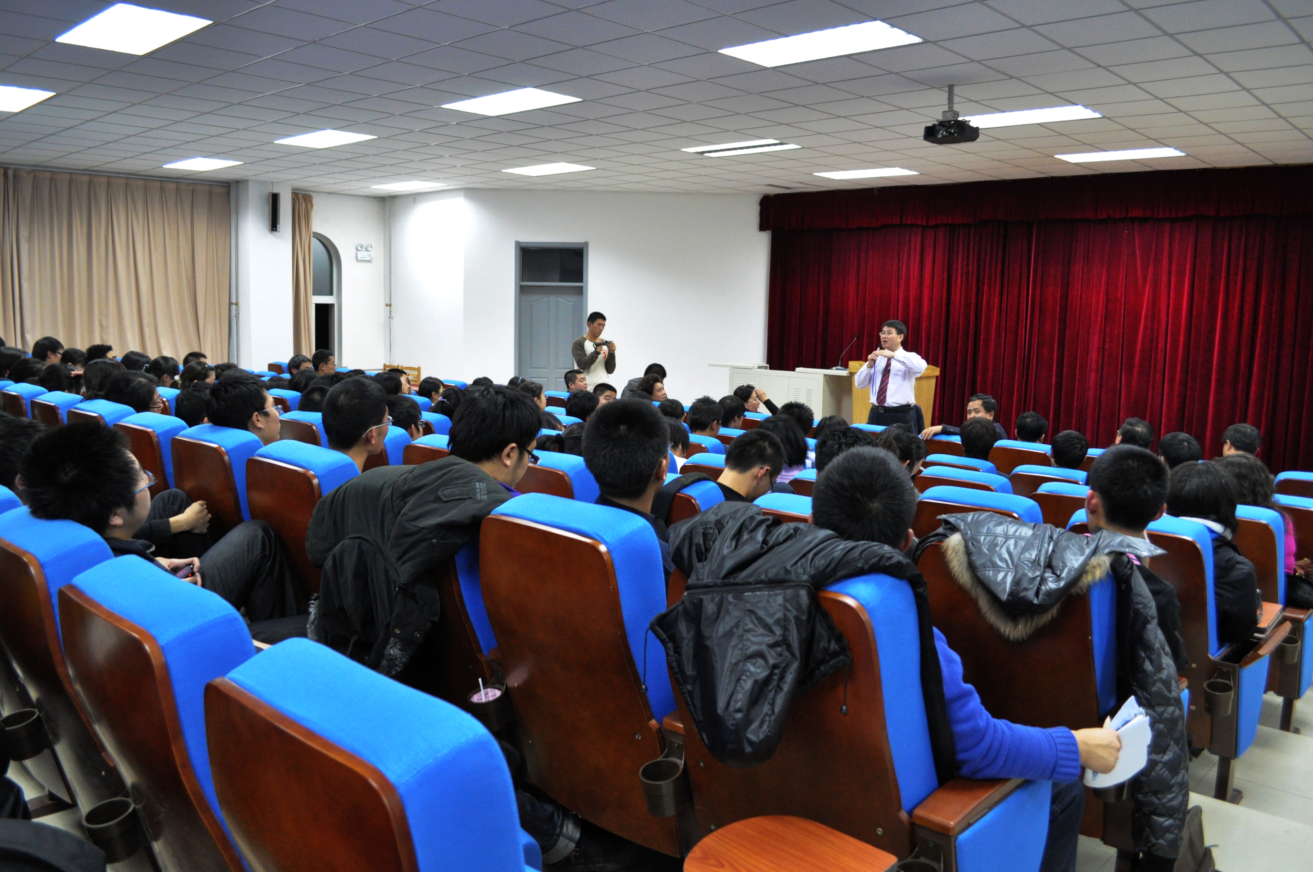 室外寒风凛冽,室内暖意融融,座谈会一直在轻松愉快的氛围中进行。同学们就图书馆藏书、实验室条件、创新人才培养模式等积极踊跃的提出问题,展校长精彩的回答赢得阵阵掌声。展校长鼓励同学们要开阔视野、解放思想、注重学科之间的交流,主动与老师同学交流;要注重理论与实践相结合、临床与教学相结合;提醒同学们一定争取海外留学机会,把国外的先进理念和思维方式带回来,促进高水平的学术交流。展校长表示,通过交流,了解了学生关注的问题,自己收获很大。学校将以“关注学生成长”为主题,采取继续加大硬件设施建设的力度、提高对教师和学生的考核标准等一系列措施,为学生成长创造更大空间。同时,希望白求恩医学班的同学们有与众不同的追求和特殊的使命感,怀着激情与理想,带着批判的思维,敢于创新,实现自己的抱负,成为有所作为的人,为社会、国家、乃至整个人类做出自己的贡献。
