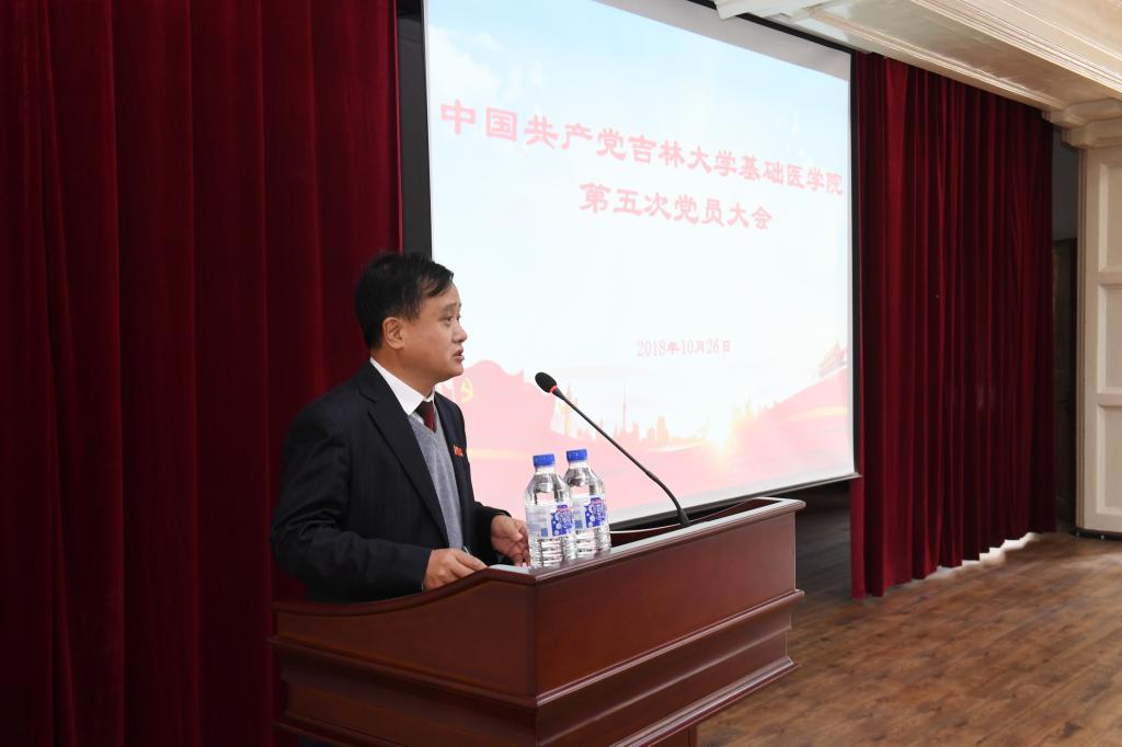 10月26日下午1:00,基础医学院在学院二楼报告厅召开中国共产党吉林大学基础医学院第五次党员大会,学院全体教职工党员及学生党员代表参加了此次大会。会议由学院院长孙连坤主持。