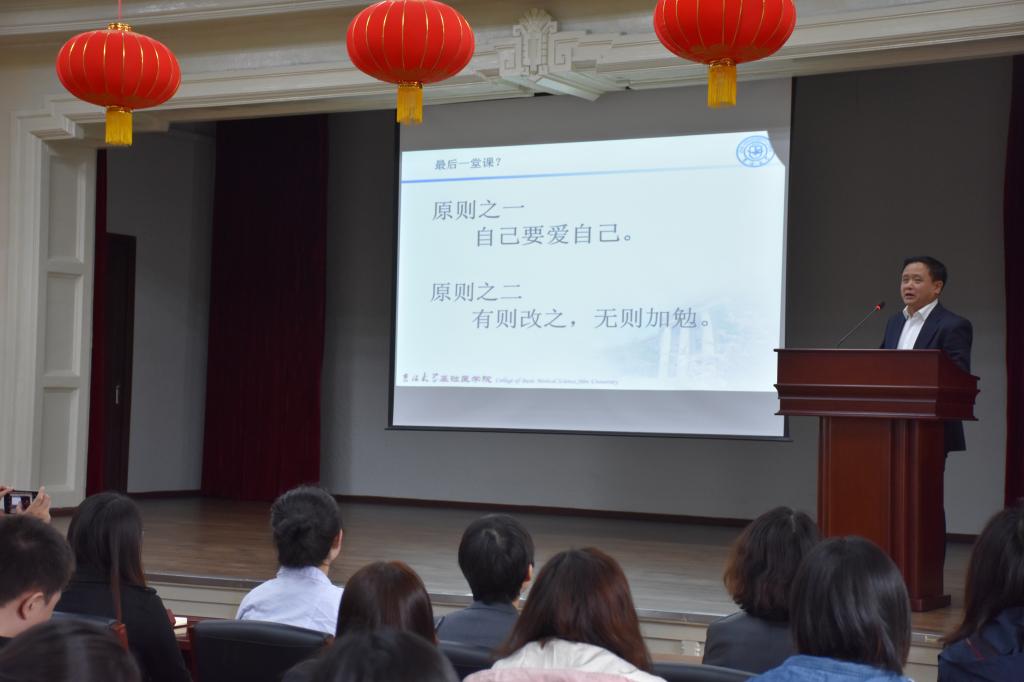 会议伊始,刘海岩副院长总结了2019年春季我院拟毕业研究生学位论文评审过程中出现的问题,提醒大家在论文撰写过程中及时纠正。随后,曹国丽副书就近期工作提出具体要求,用实例分析了端正学习态度、掌握学习方法和提高学习效率的辩证关系,并且反复强调安全问题的重要性,对日常管理和实验室科研中存在的安全隐患进行了详细的说明。最后,孙连坤院长围绕“论文撰写与毕业答辩”做了专题讲座。孙院长结合自身学习与工作经历,分享了科研工作的宝贵心得,督促全体同学在研究生学习期间,学会调整心态,脚踏实地,培养科研思维和科研能力。他指出:医学研究最为复杂,同学们务必要戒骄戒躁,悉心钻研。同时,他还对即将到来的毕业答辩进行了指导,为在座的各位拟毕业研究生答疑解惑。