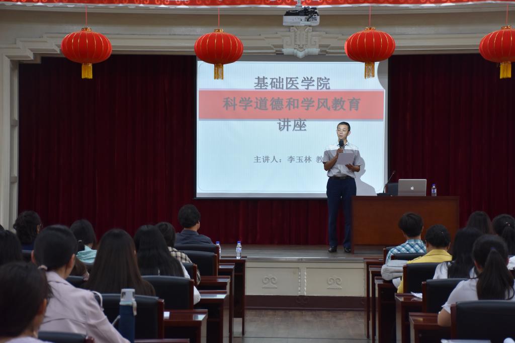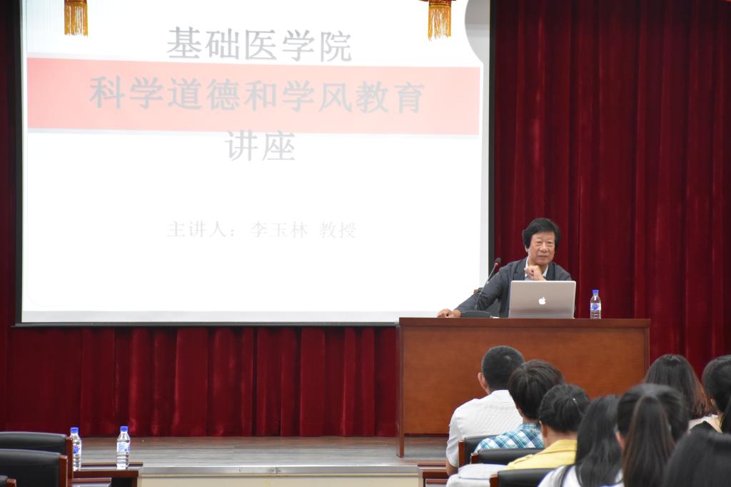 为做好科学道德与学风建设工作,营造风清气正的良好学术生态环境, 8月29日下午2:40,基础医学院在二楼报告厅举办了科学道德和学风教育讲座,特邀国家教学名师李玉林教授作为主讲人,讲座由刘海岩副院长主持,党委副书记曹国丽和研办全体老师出席。