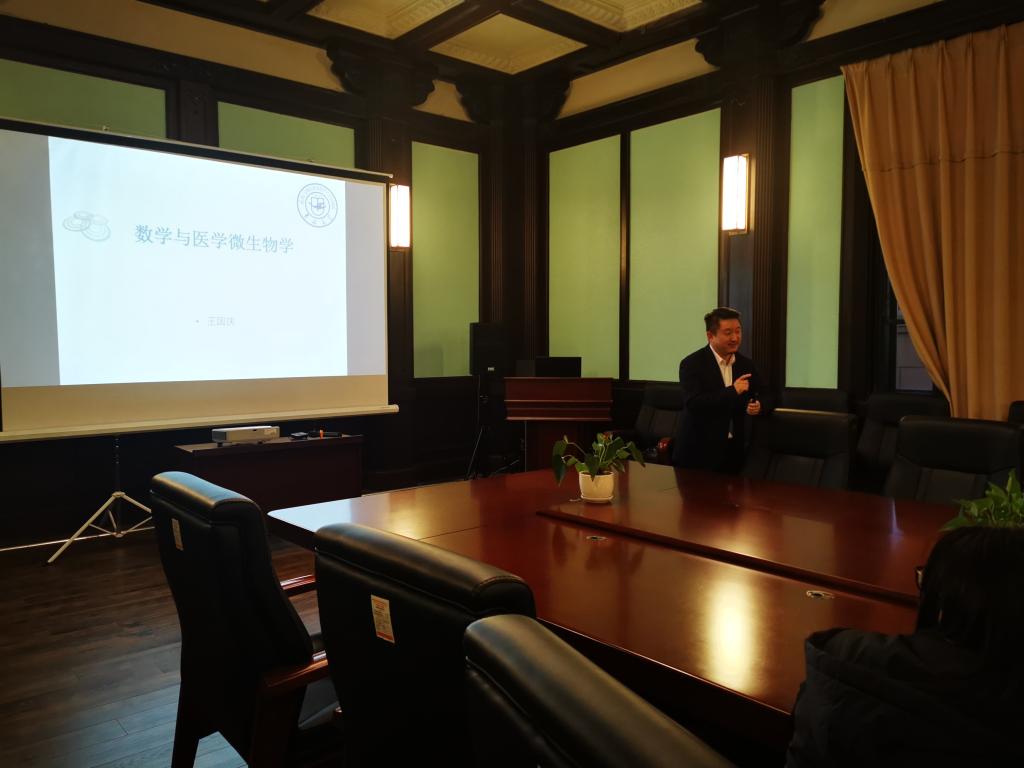 学术交流会由吉林大学科技处副处长王国庆教授主持。基础医学院孙连坤院长首先代表学院对张然教授团队的到来表示了热烈的欢迎,同时介绍了学院的师资力量、学科建设等整体情况,并表示真心希望通过多学科的交叉合作有效促进学科的发展。张然教授介绍了数学学院的整体概况、学科的发展举措以及学科交叉合作的优势。随后,贾继伟副教授介绍了大数据相关案例及应用。王国庆教授介绍了“数学与医学微生物学”的相关工作进展情况。基础医学院辛颖副院长、孙巍副院长也出席了会议,与会师生表现出浓厚的兴趣并展开了热烈地讨论。