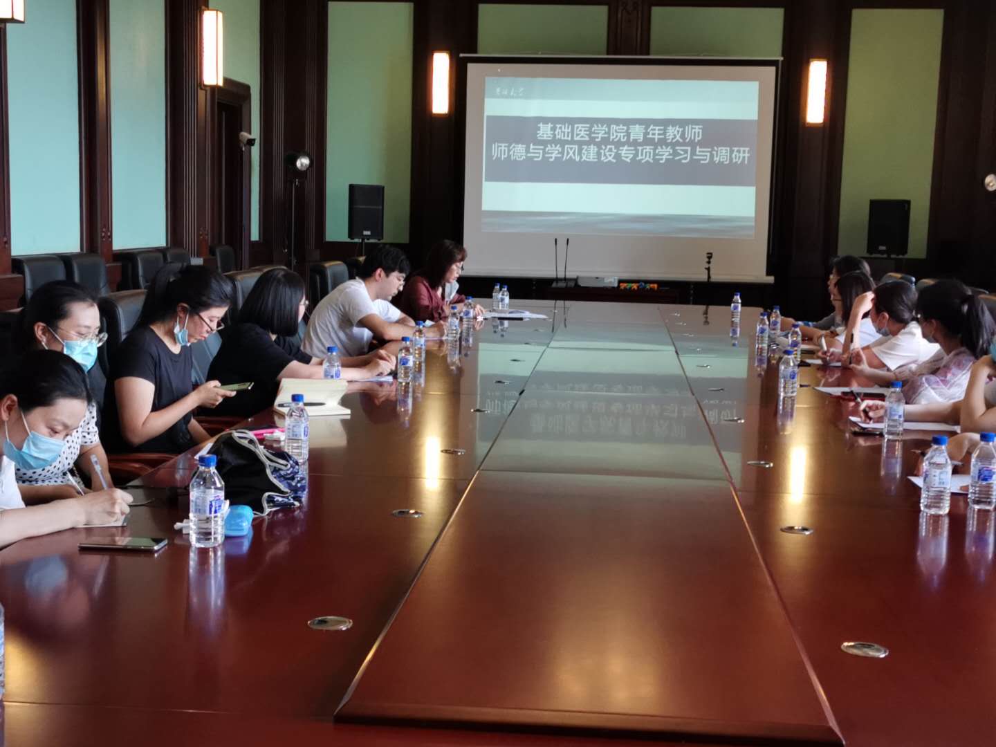 6月19日下午,基础医学院科研办组织召开青年教师师德与学风建设专项学习研讨,学院13名青年教师代表参加了此次会议。会议由学院科研主管副院长辛颖教授主持。