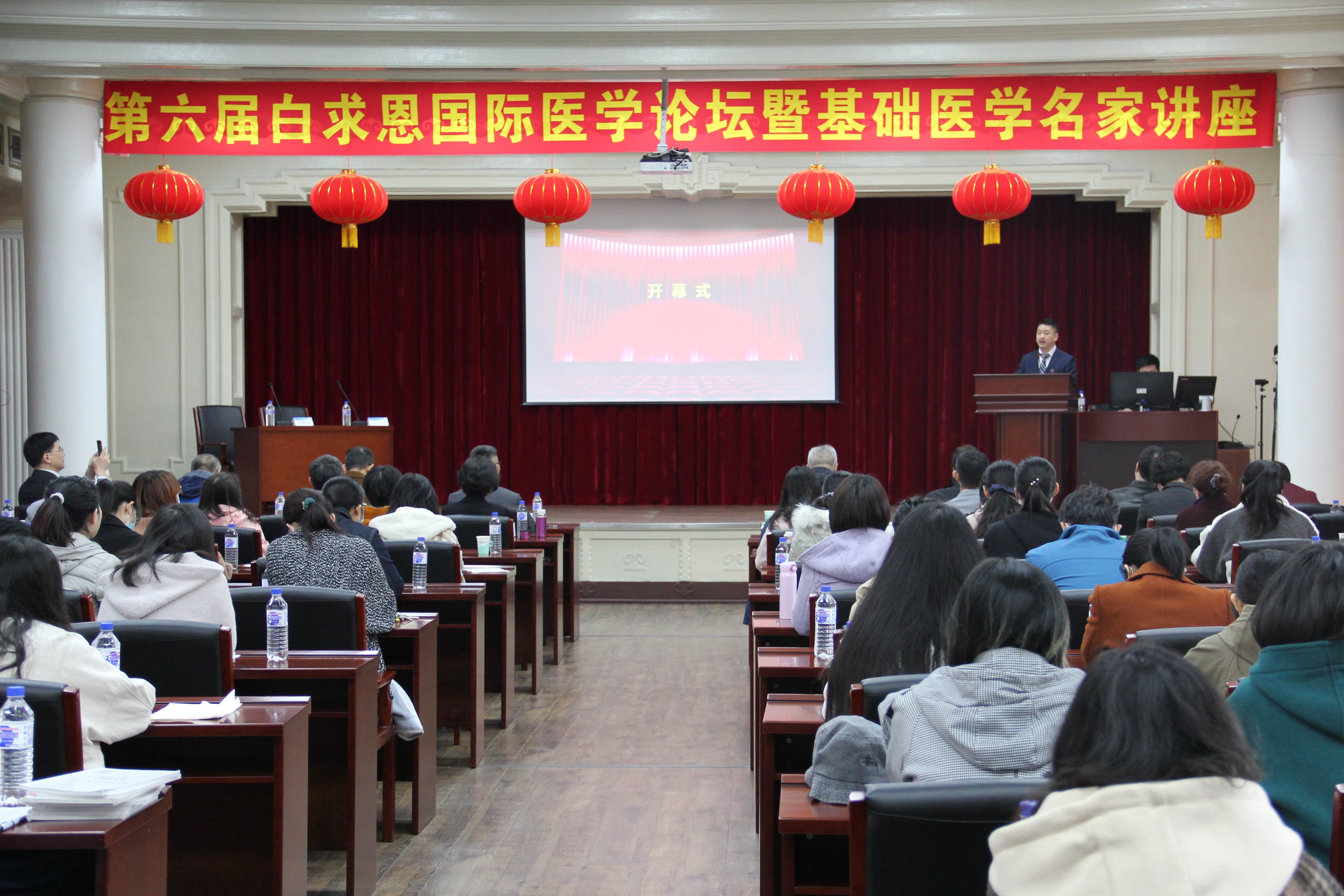 大会由基础医学院院长孙连坤教授主持,白求恩医学部副学部长王放教授与吉林大学科技处副处长王国庆教授在开幕式上致辞,他们对本次大会的召开表示热烈祝贺,同时对与会专家表示热烈欢迎,并向与会专家介绍了吉林大学、白求恩医学部、基础医学院以及以往白求恩国际医学论坛的举办情况。