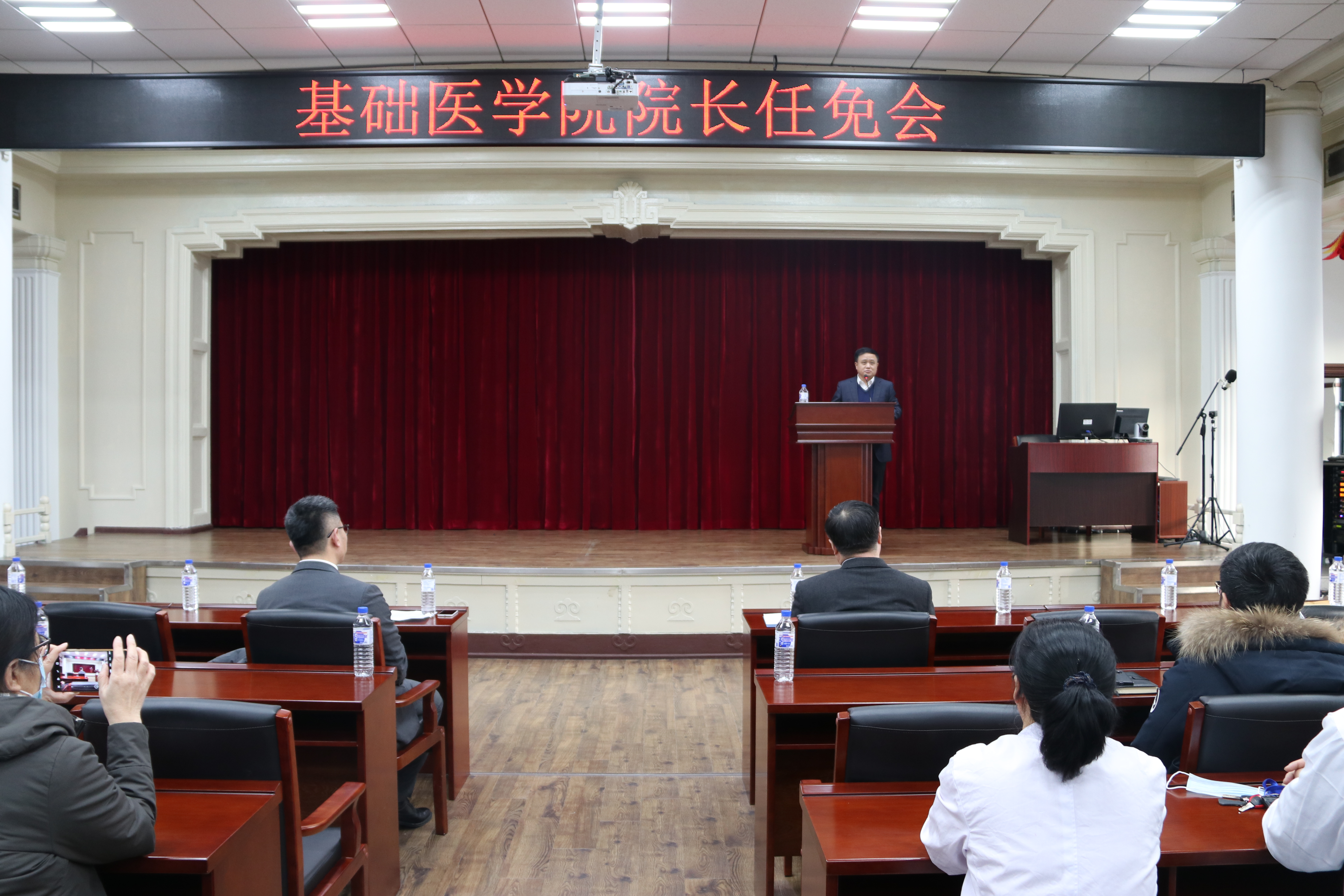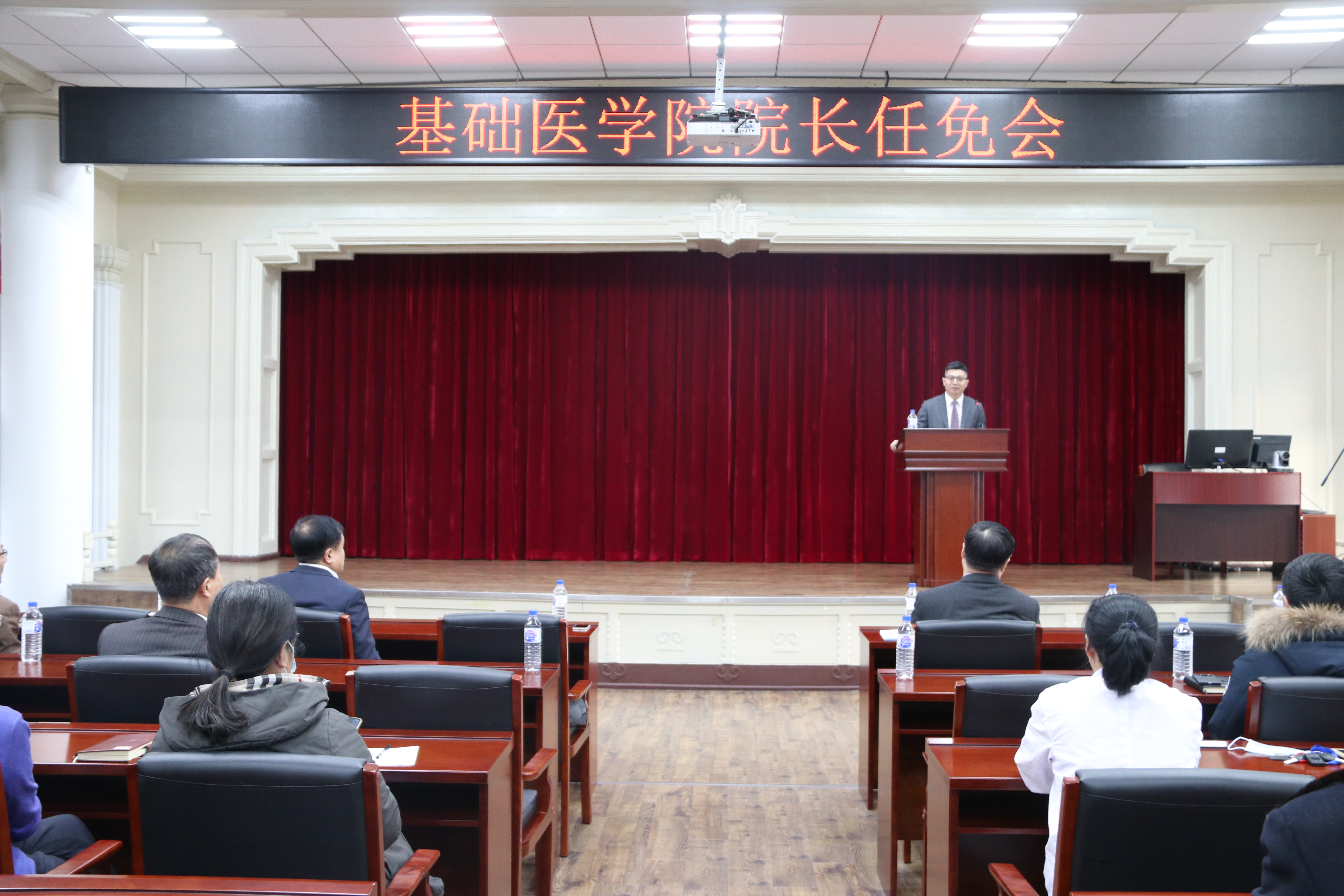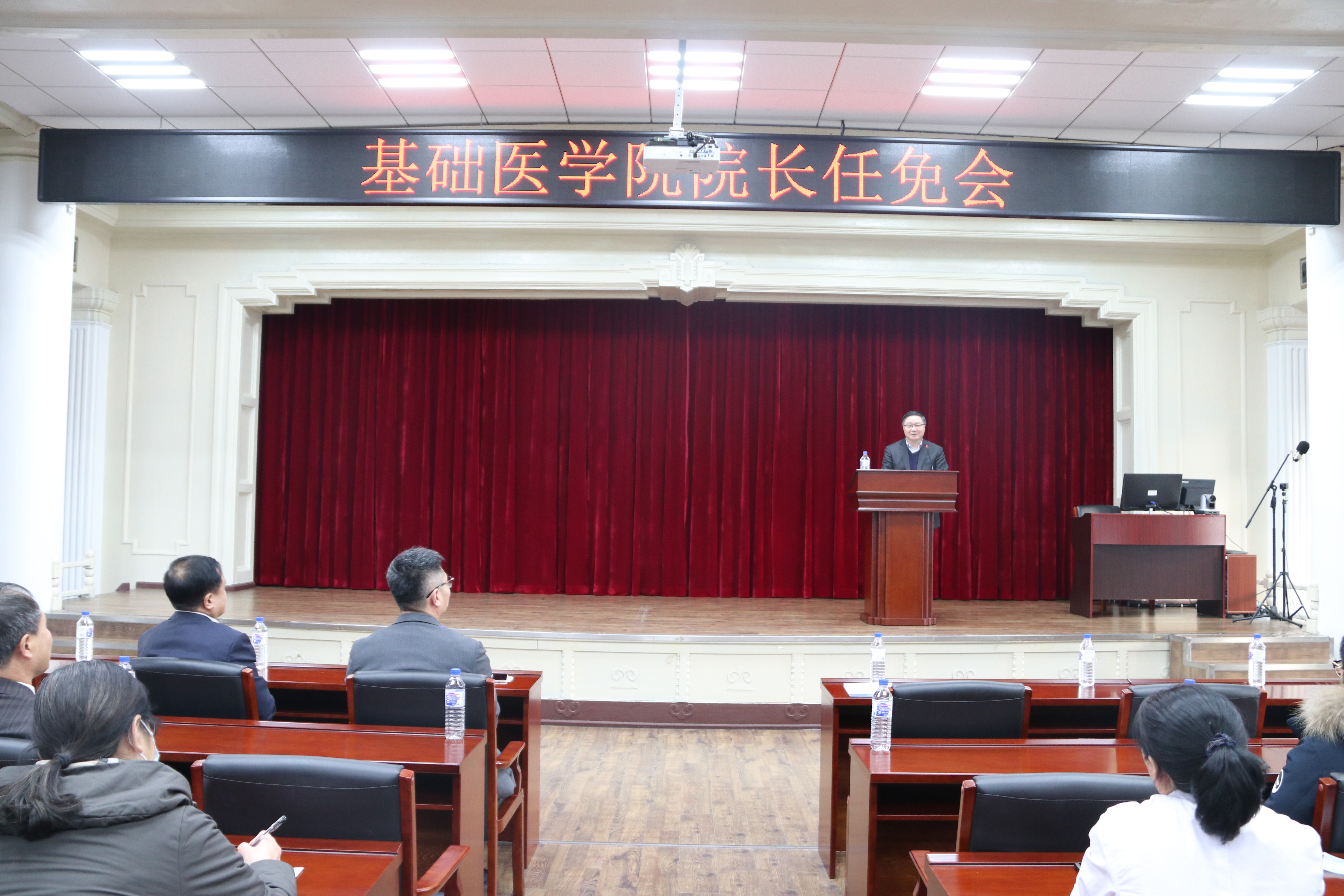 首先,刘志伟书记宣读了吉林大学文件:任命王放为基础医学院院长;免去孙连坤的基础医学院院长职务。