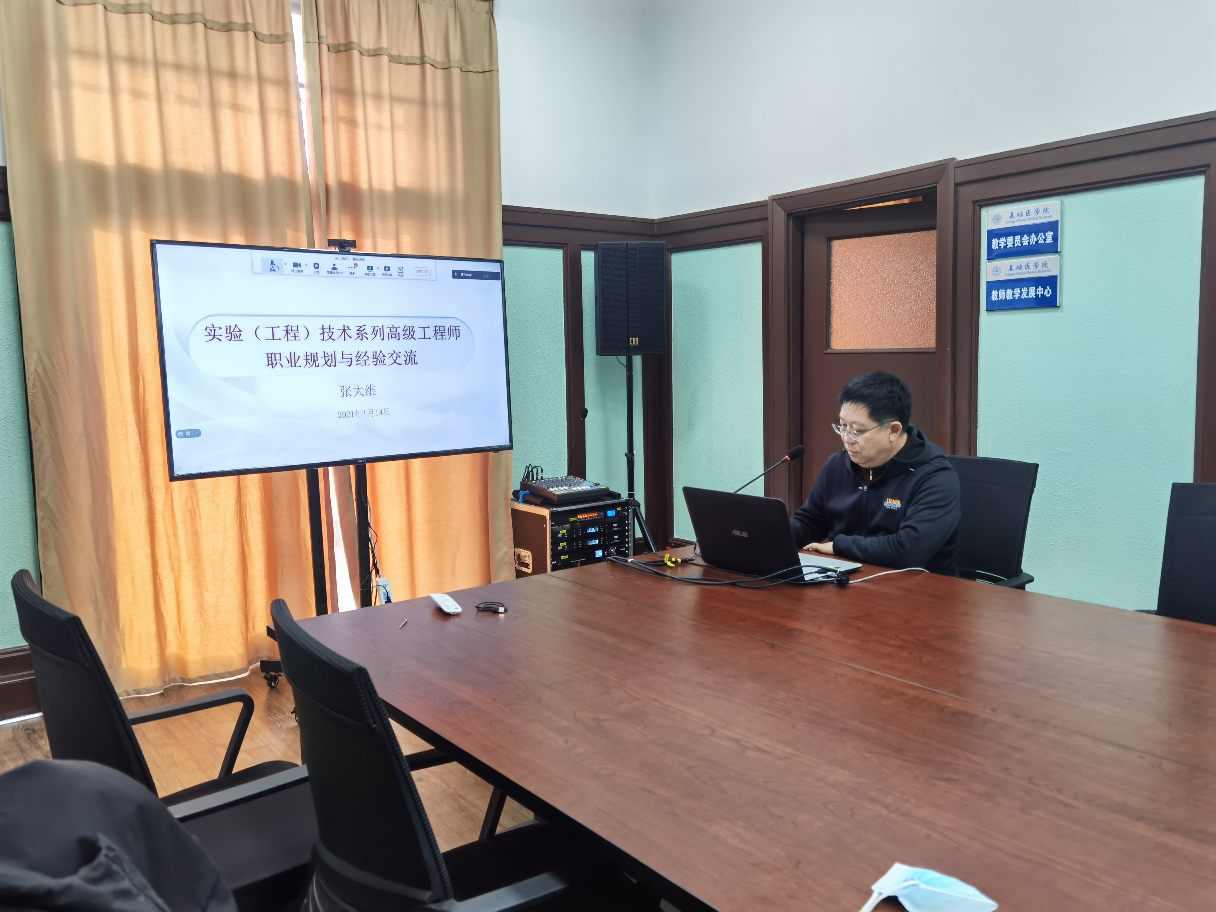 为进一步提升学院实验技术人员素质,激发工作热情,鼓励踏实工作、大胆创新,为教学科研提供优良的技术支撑和条件保障, 1月14日下午,基础医学院通过线上腾讯会议方式举行实验(工程)技术系列高级工程师职业规划与经验交流会。会议主讲人为基础医学院动物中心张大维研究员。