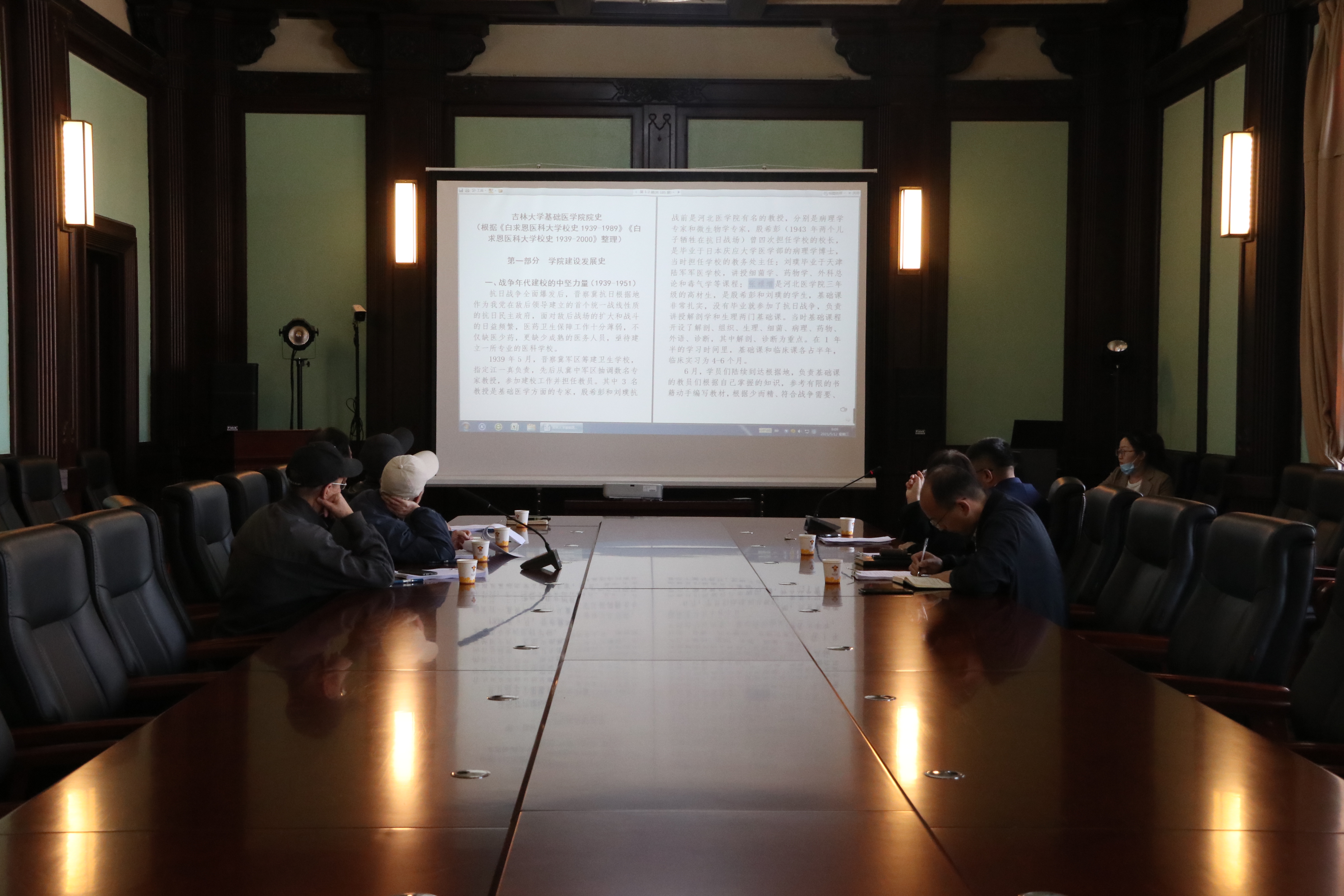 会上,学院院长王放、党委书记王晓荣向老领导们为编撰学院史工作给与的支持和鼓励表示感谢。王放院长介绍了院史编撰的前期准备过程和目前的工作进度;王晓荣书记向老领导们详细讲解了不同历史时期中战争年代建校的中坚力量、学部(院)创建与建设初期的贡献等十个时期的基础医学院院史内容。期间,老领导们对编撰学院史工作给与充分肯定和高度评价,同时也指出部分与修正意见、建议。李玉林校长指出:应从党史学习角度完善院史编撰,并进一步挖掘老一代医学家、教育家、科学家和他们的感人事迹,更好的继承和弘扬白求恩精神;吴家祥校长指出:编撰工作既要联系实际,又要尊重历史,不能丢弃七十年来建立的奋斗精神,同时也表明梳理建校、建院的过程就是学习党史的过程;钟国赣校长指出编撰院史一定要精准写清楚各阶段历史。
