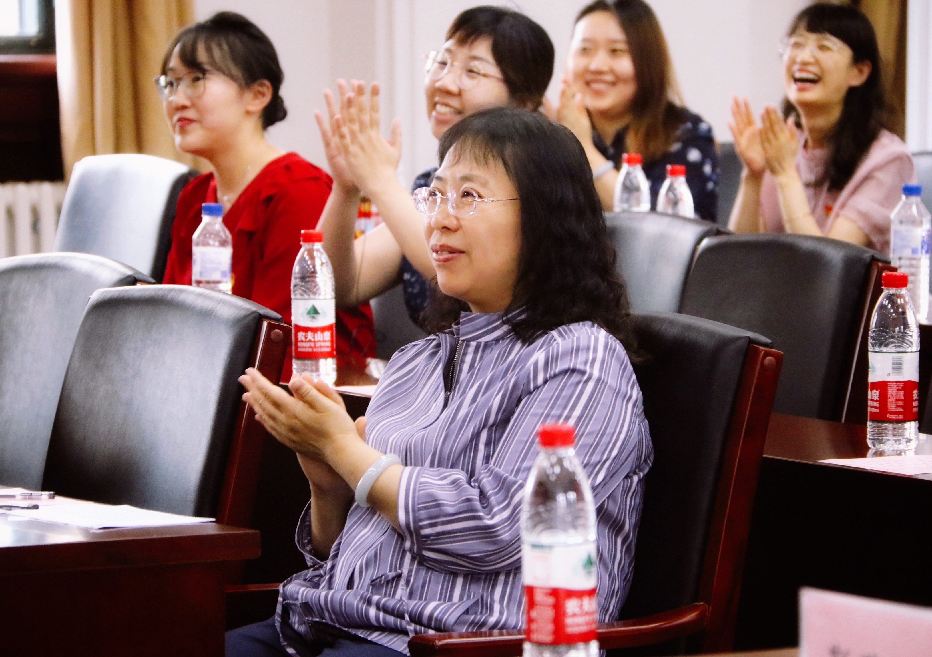 本次活动由学院妇委会紧紧围绕学校2021 年"一家一品一特色"的工作要求开展,既是一场音乐盛宴,更是一次特殊的党史教育。老师们用独唱、对唱、重唱、口琴演奏等丰富多彩的表演形式,饱含深情地演绎了《草原上升起不落的太阳》《国家》《不忘初心》《江山》《映山红》《我的中国心》《走向复兴》等15个经典曲目,秉承爱国主义,传承白求恩精神,讲述百年党史及学院历史,唱响经典红歌,喜迎党的百年华诞,用歌声向党和祖国献礼。