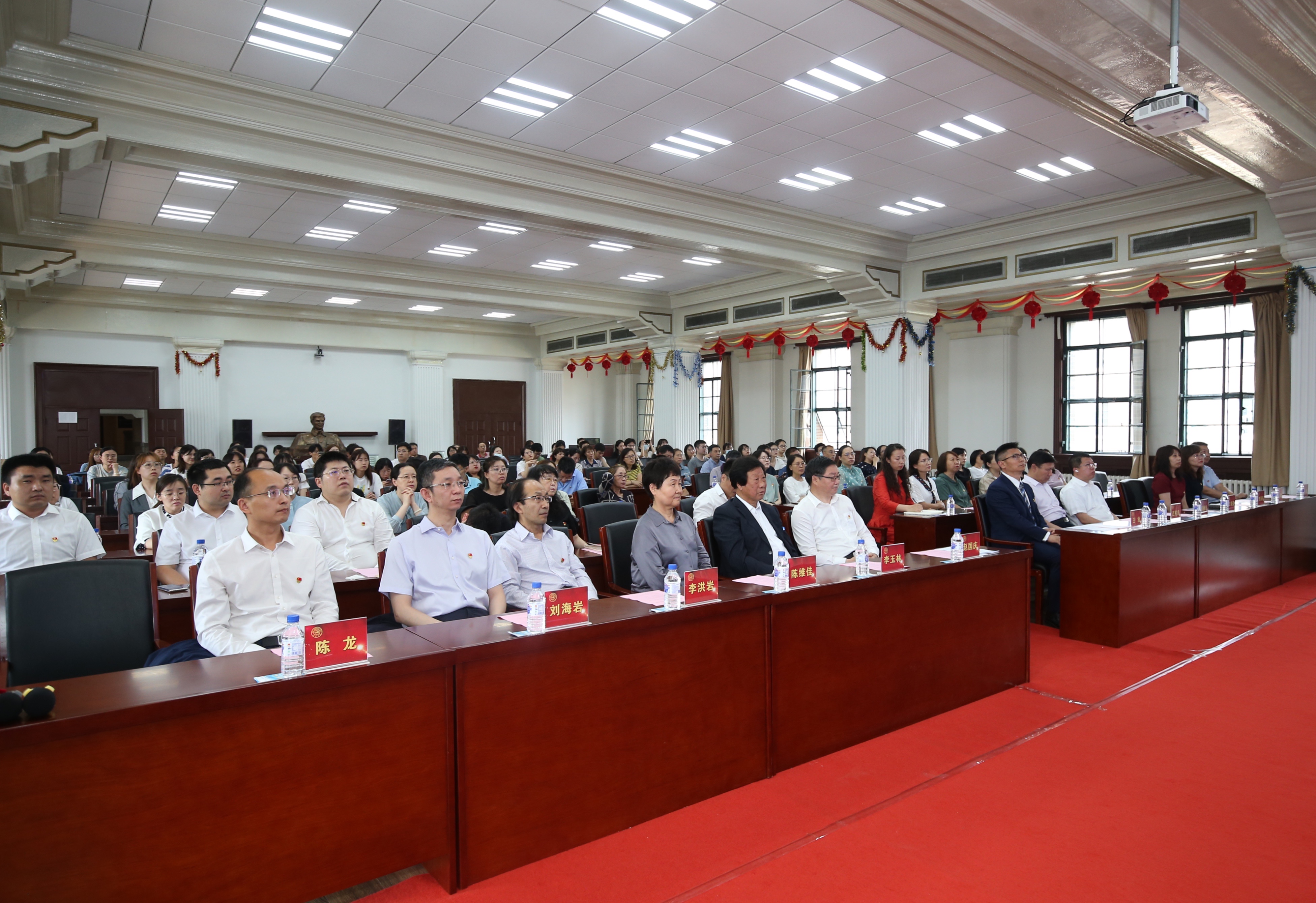 在庆祝中国共产党成立100周年之际,为深入贯彻落实党史学习教育要求,进一步总结经验,凝聚学院精神和力量,6月28日下午,基础医学院隆重举行白求恩塑像揭幕暨党员退休荣休仪式。吉林大学副校长、医学部学部长赵国庆,吉林大学校友和基金工作办公室处长迟宪良,基础医学院班子、中层干部和全体党员,以及为学院无偿捐赠大型白求恩半身像、23平方米高清晰度显示屏的长春先临三维云打印技术有限公司、长春博迅生物技术有限责任公司的领导也参加了本次活动。学院党委书记王晓荣主持了白求恩塑像揭幕和党员退休荣休仪式。