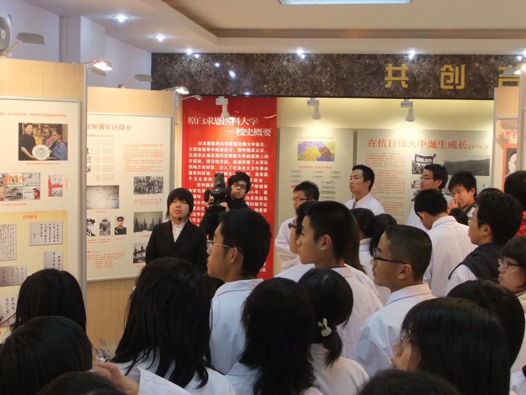 12时30分,学生工作办公室主任吴剑锋向同学们讲解了这次纪念活动的重要意义,要求同学认认真真参观,切身体会白求恩精神的真正内涵,以实际行动在将来的学习、生活、工作当中践行白求恩精神,传承白求恩精神,弘扬白求恩精神。