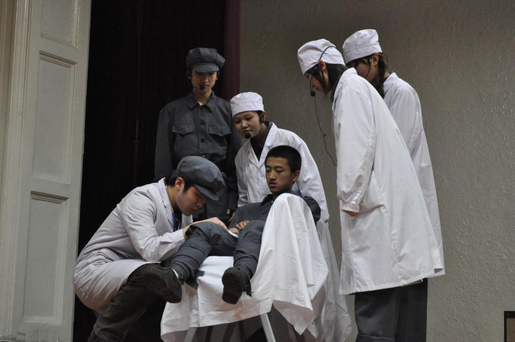 随后进行了话剧《白求恩》的首演。《白求恩》是白求恩医学院学生自编自导自演的话剧,话剧从不同的角度演绎了白求恩对伤员的认真负责、对医学的严谨求实、对战友的手足情谊以及对中国抗日战争做出的突出贡献。《白求恩》的首演掀起了本次文化节开幕式的高潮。同学们对白求恩精神的深刻领悟和精彩演绎震撼了现场所有观众,细腻的表演技巧、情感的真实投入、振奋的经典旁白,博得了现场经久不息的掌声。现场的同学纷纷表示作为白求恩的传人一定会在白求恩精神的感召下,求真务实、严谨细致,秉承白求恩品质,传承白求恩精神,早日成为祖国建设的栋梁之才。