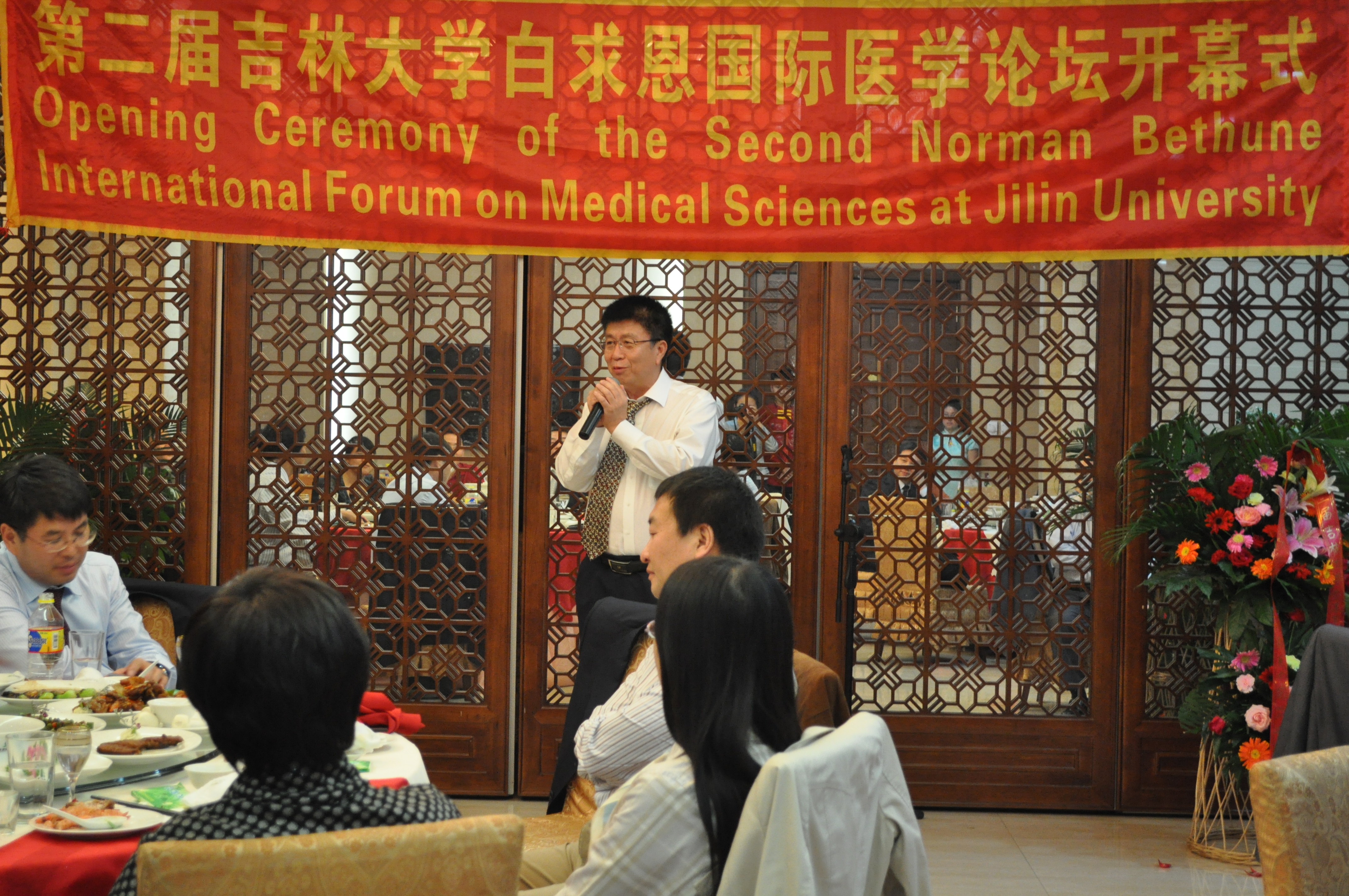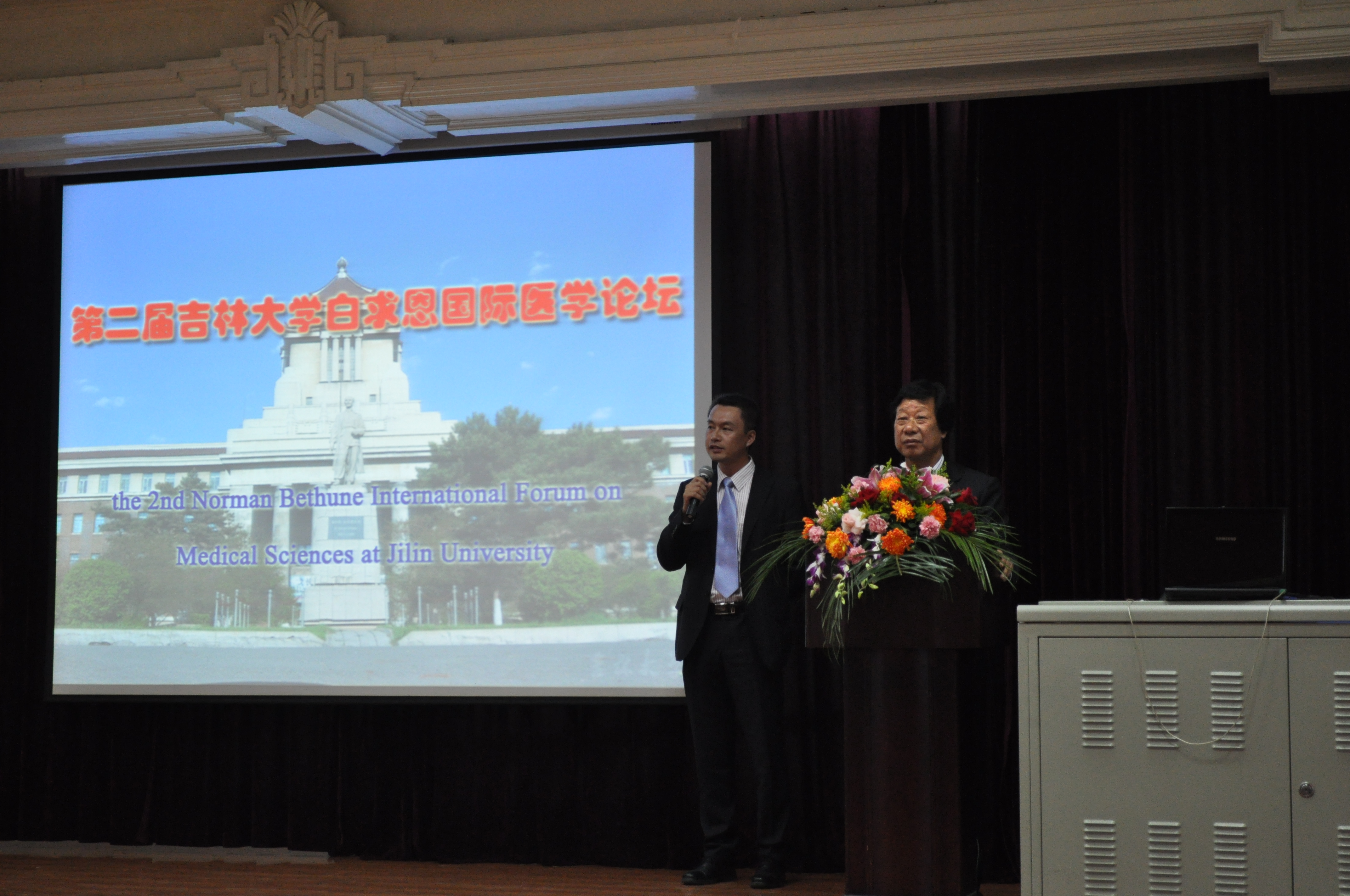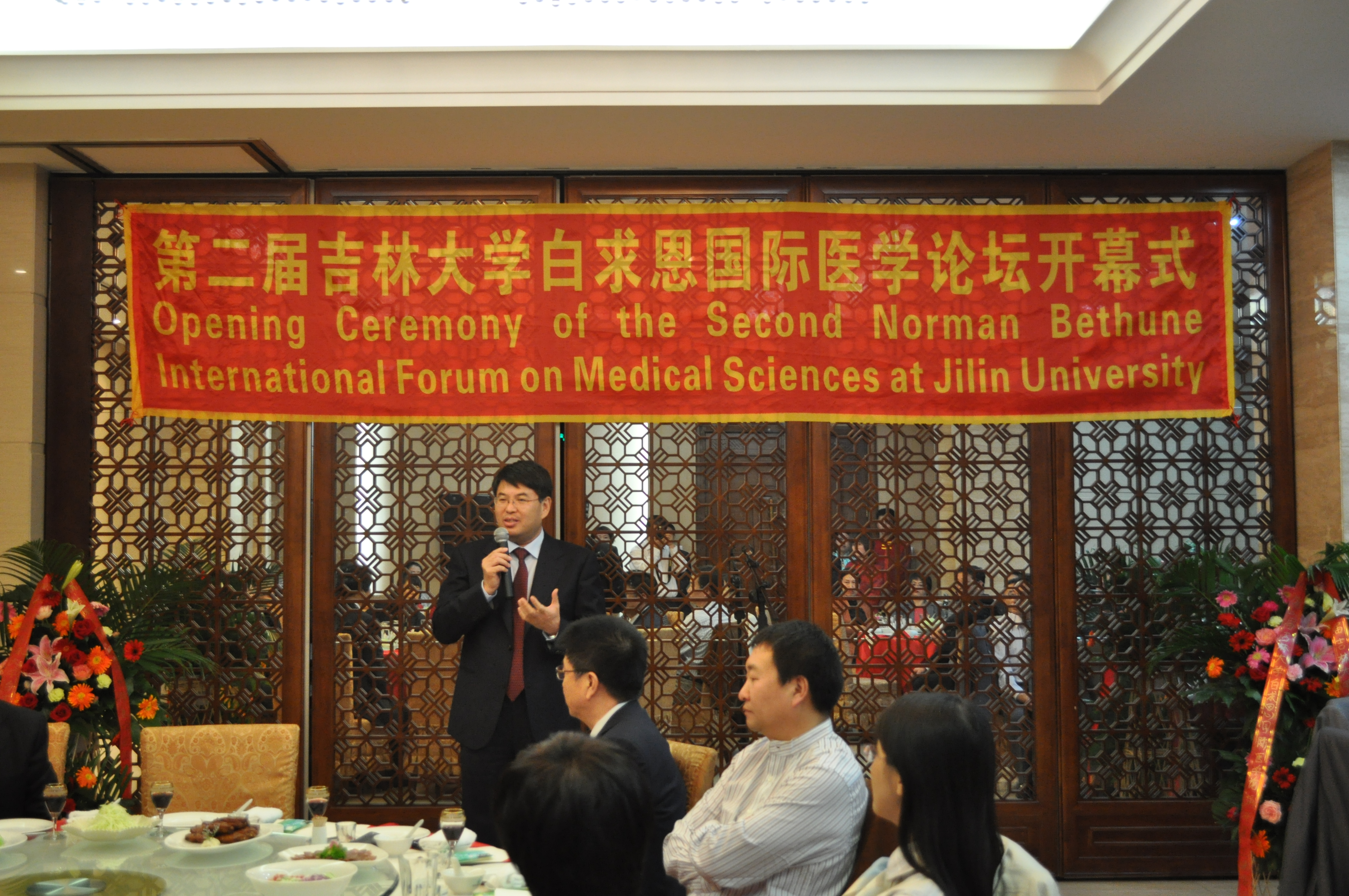 9月24日晚,第二届吉林大学白求恩国际医学论坛开幕式在新民宾馆隆重举行。校长展涛、副校长王冠军参加开幕式并讲话,原吉林大学常务副校长、白求恩医学院院长李玉林教授主持了开幕式。