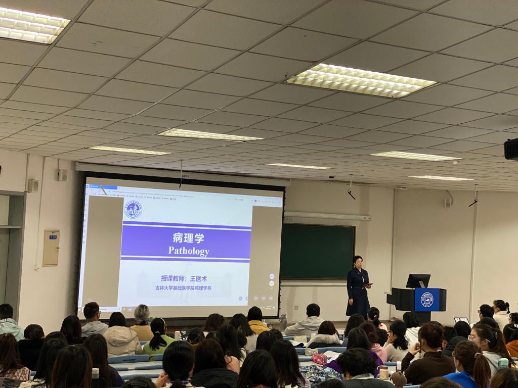 王医术教授讲授的《病理学》,以《病理学》国家精品在线课程为依托,采用线上线下混合式教学模式,讲授生动精彩,授课内容丰富多样,课堂气氛活跃。教学现场,学院领导认真听取王医术老师授课,并做了详细的听课记录;课后,对课堂设计、教学模式等进行了中肯的评价。