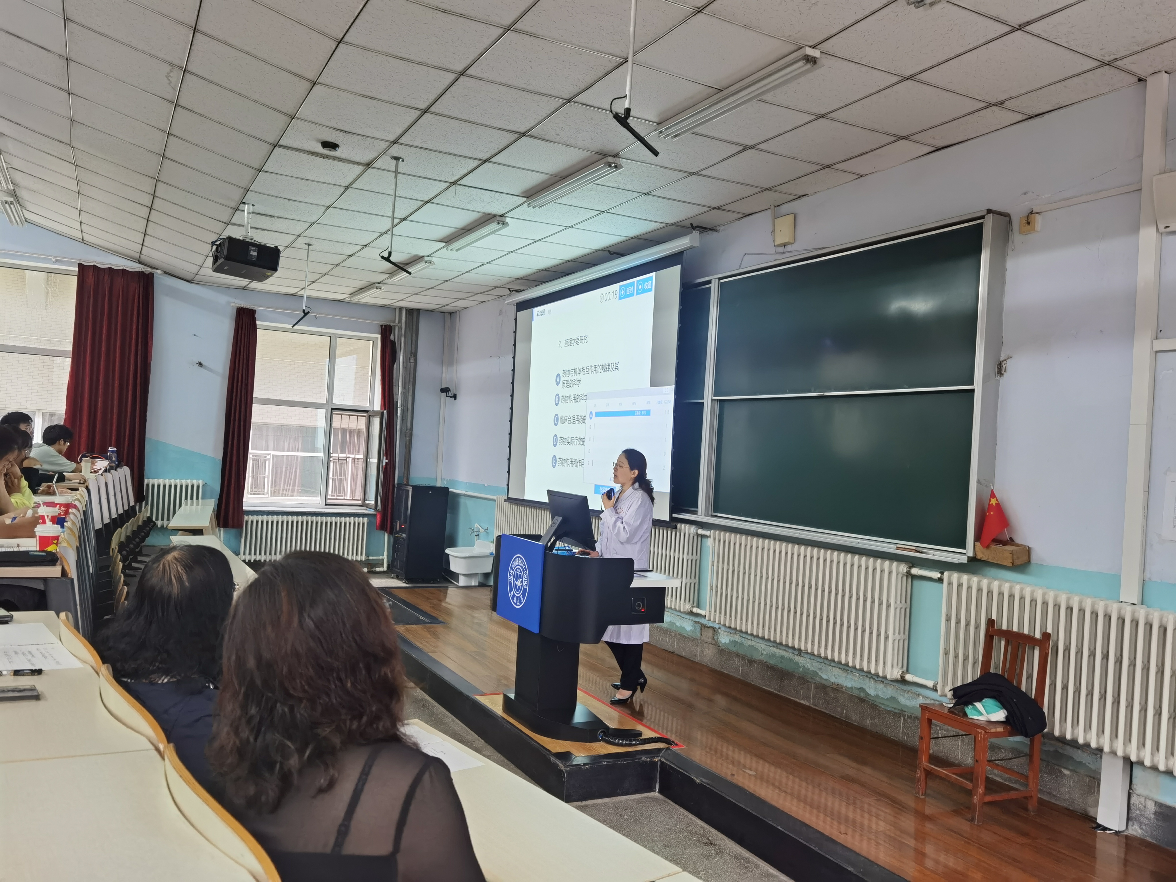 新学期伊始,为了更好地加强教学管理,推进教风与思政建设,持续提高教学质量,8月29日上午,基础医学院党委书记王晓荣、院长王放、主管教学副院长辛颖以及教务办全体工作人员深入新学期课堂听课,了解和检查教师课堂授课情况。