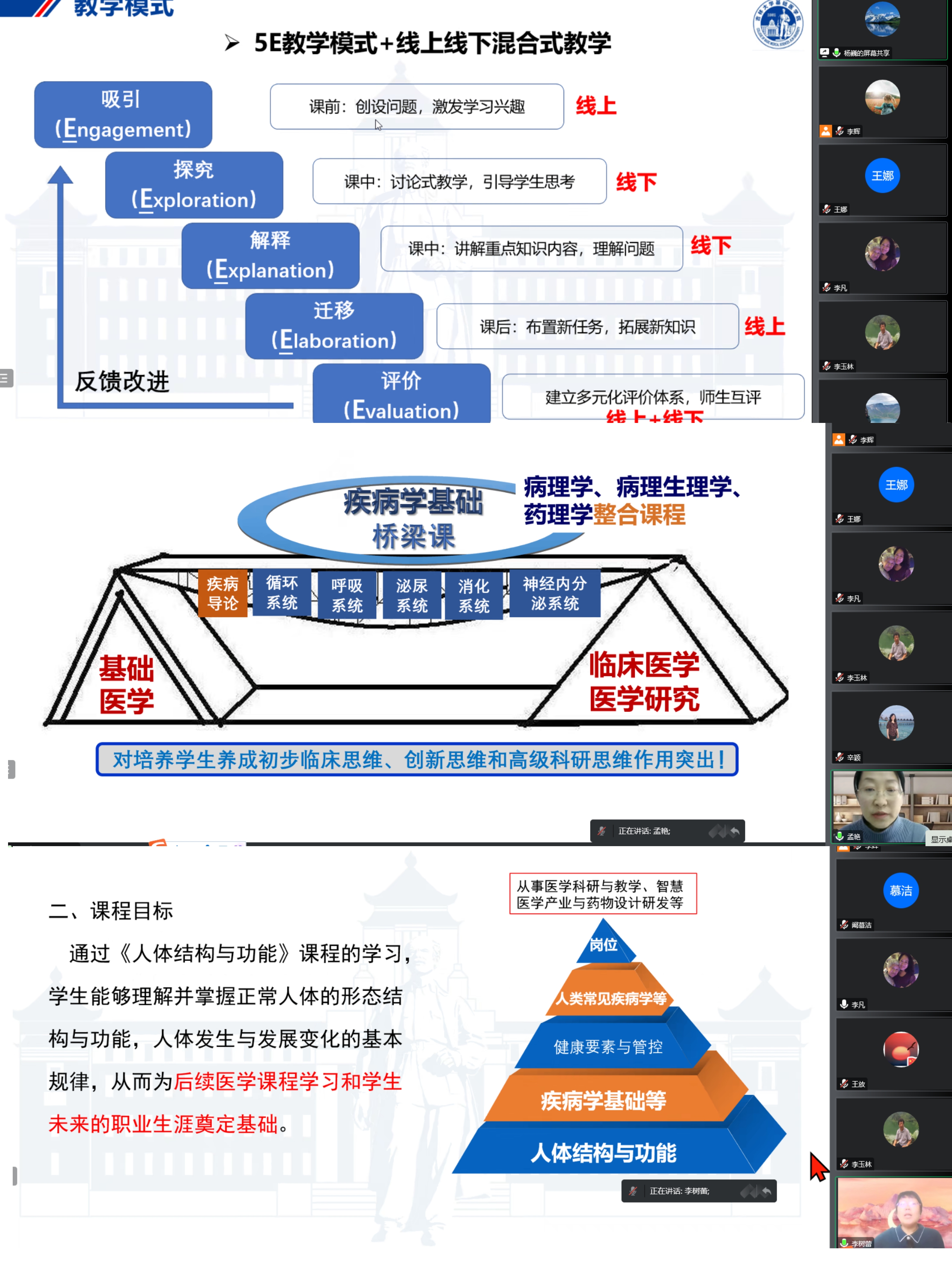 为保障生物医学科学本科专业人才培养质量,推进生物医学科学专业建设,基础医学院于12月27日通过腾讯会议召开了生物医学科学本科专业课程负责人申报答辩会,共有27名教师参加此次答辩会。会议邀请到原常务副校长李玉林教授,原副校级干部、现任健康研究院院长李凡教授,吉林大学医学部副学部长兼医学教育办公室主任金祥雷,吉林大学医学督导专家组组长吴运涛,原基础医学院院长孙连坤教授,院长王放教授、王晓荣书记、副院长刘海岩教授、孙巍教授,学院教学委员会主任委员王医术教授以及医学督导专家组李一教授等担任专家组评委,会议由学院教学副院长辛颖教授主持。