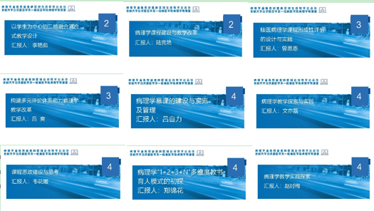 吉林、广西医学高校病理学教研室的优秀教师就病理学教学基本情况和线上教学资源应用、病理学课程教学设计和创新、病理学课程形成性评价的设置和实践以及人文素养、课程思政和教学特色等四个主题进行了精彩的汇报。吉林大学基础医学院病理学系的李艳茹和吕爽分别以《以学生为中心的二维融合混合式教学设计》和《构建多元评价体系助力病理学教学改革》为题,分享了混合式教学模式以及形成性评价的实施经验。