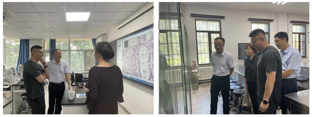 8月23日上午,党委常委、副校长赵宏伟到基础医学国家级实验教学示范中心检查开学准备情况。医学部副学部长兼医学教育办公室主任、医学教育研究与教师发展中心主任金祥雷、教务处副处长姜湧、医学部医学教育办公室副主李治国等职能部门人员以及基础医学院院长王放、党委书记王晓荣、副院长辛颖、副院长孙巍及相关科室工作人员陪同检查。