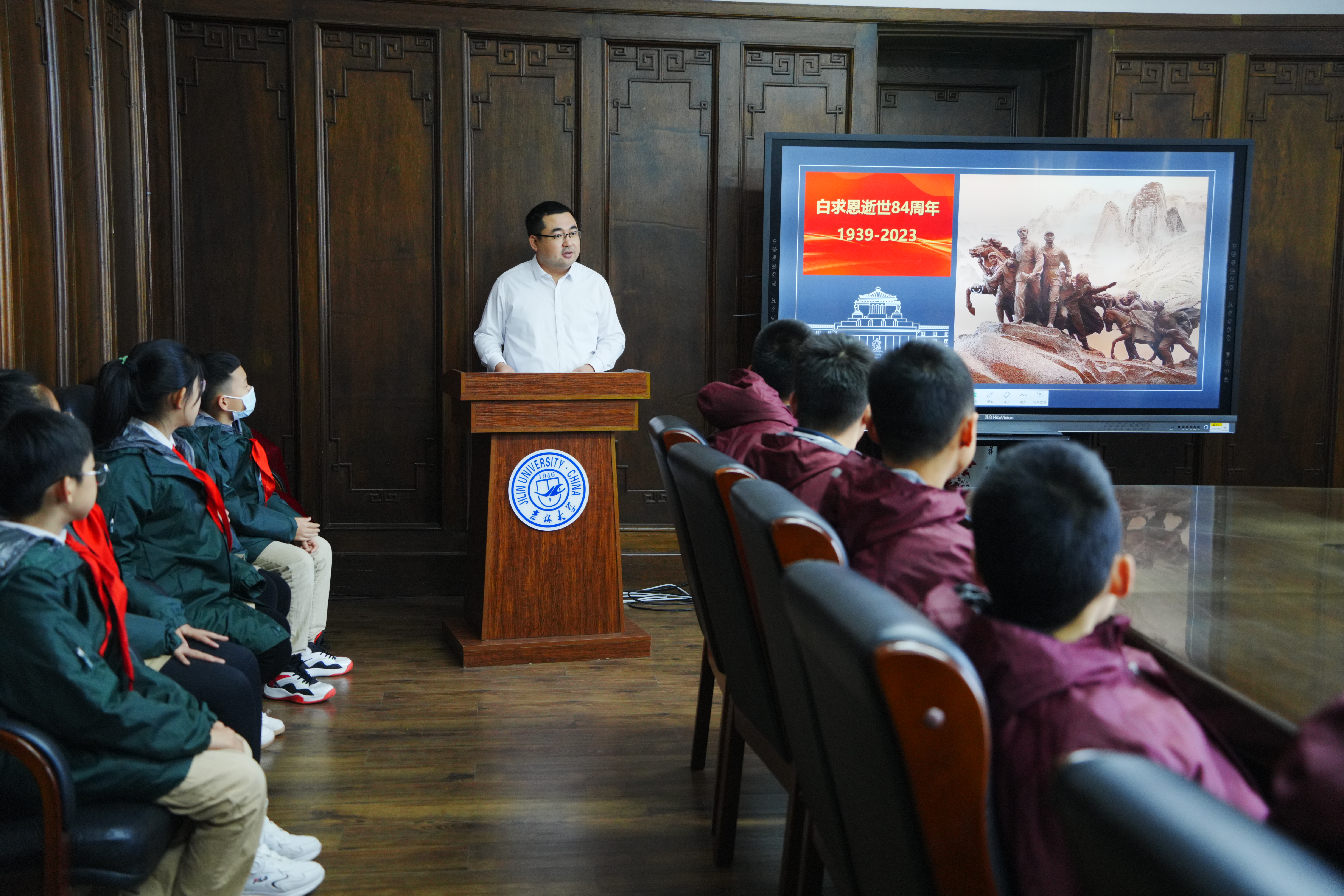 为进一步聚焦立德树人根本任务,共享优质资源,做强品牌活动,推动中小学科学教育学校主阵地与社会大课堂有机衔接,11月10日上午,吉林大学基础医学院开展中小学科普教育活动,来自长春南湖实验中学、长春南湖实验中海小学、长春市第一实验银河小学的中小学生们们在老师的带领下来到白求恩医学部,在白求恩逝世84周年即将到来之际,参观了吉林大学白求恩纪念馆。