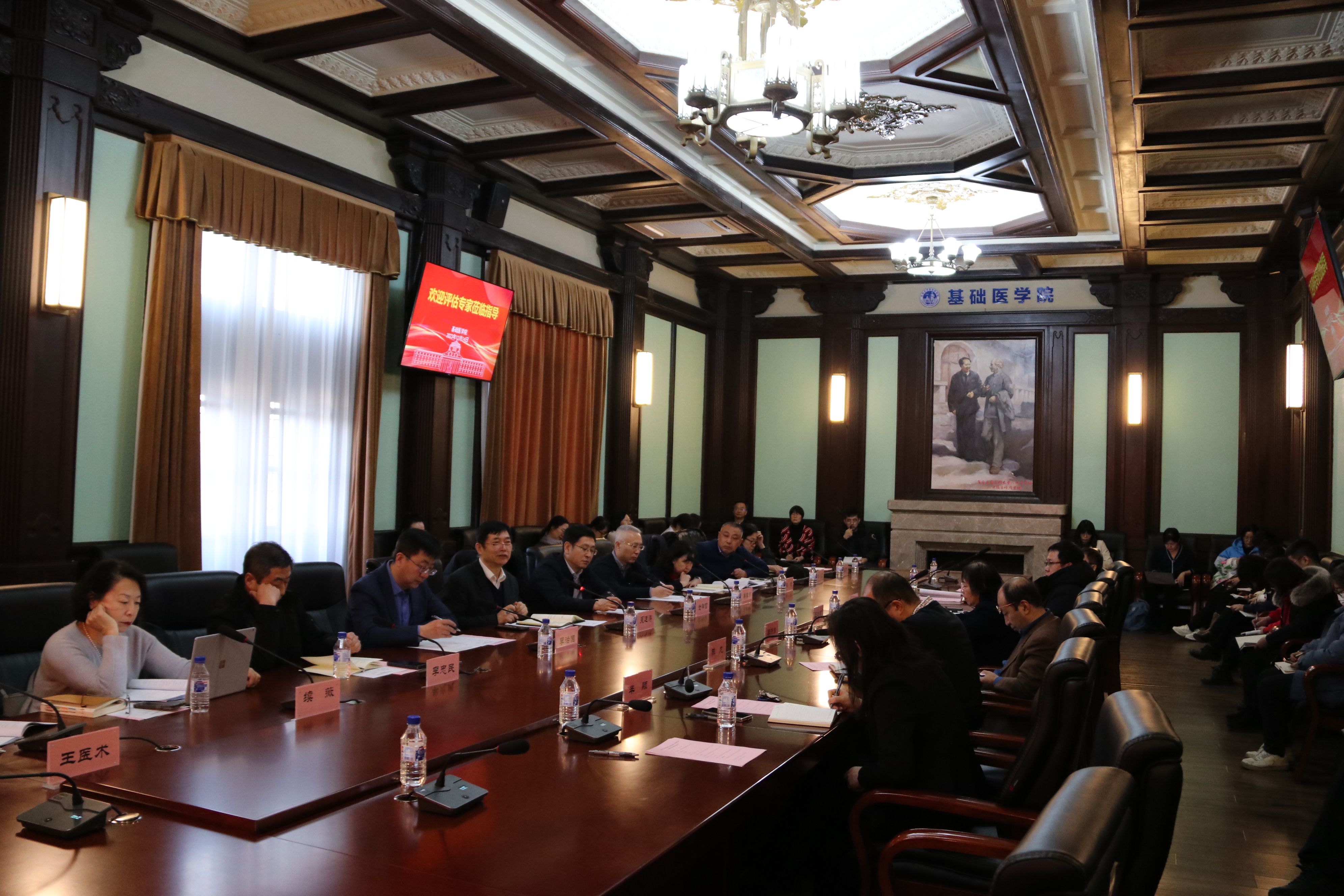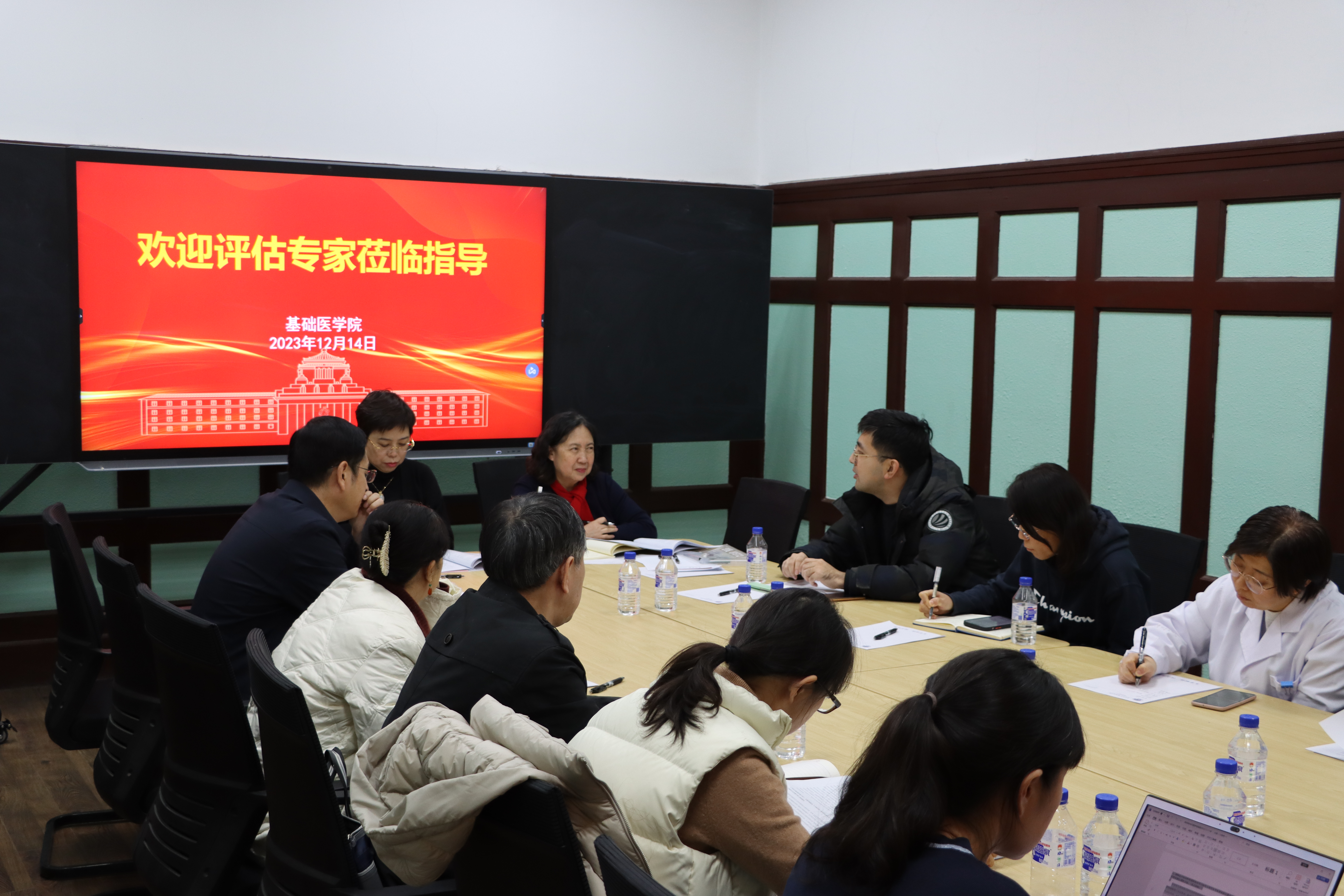 2023年12月14日上午,吉林大学本科教育教学审核评估第一轮基础医学院自评论证会在基础楼409会议室召开。参加会议的专家包括:白求恩医学部副学部长金祥雷、医学教育办公室副主任李治国、医学部考察专家组组长王医术,副组长姜春明、吴运涛,专家睢大筼、李忠民、费瑞、张捷、续薇、刘春丽。基础医学院领导班子全体成员、各学系主任、学院督导组、学院教学委员会委员、教学秘书等全程参加了学院自评论证会。会议由专家组组长王医术主持。