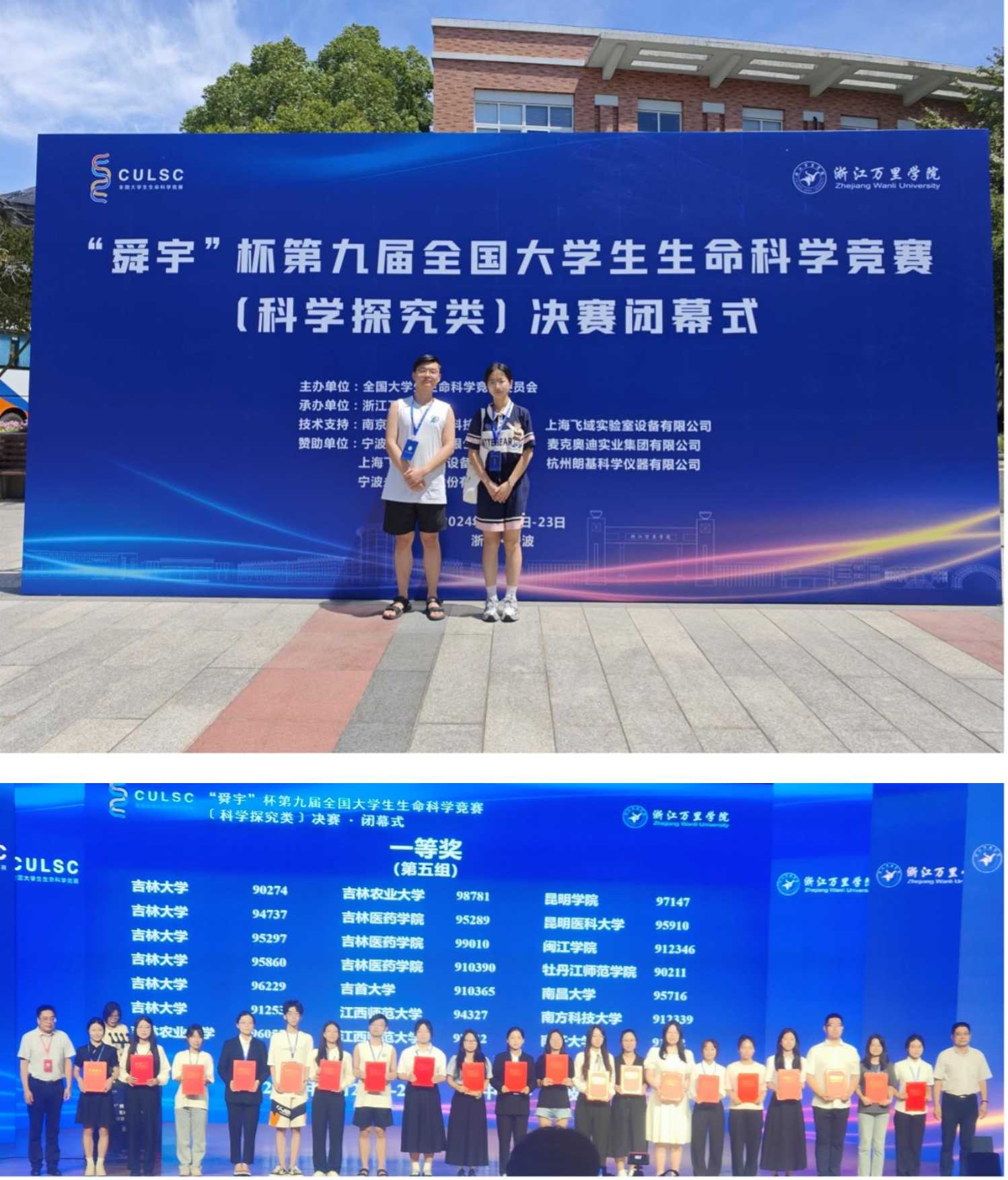 7月23日,由全国大学生生命科学竞赛委员会主办的“第九届全国大学生生命科学竞赛(科学探究类)”全国总决赛闭幕式在浙江宁波圆满落幕。我院教师指导参赛的9支学生队伍,获得全国一等奖2项,二等奖3项,三等奖4项。我院首届生物医学科学专业本科生队伍首次参与此项赛事,获得国家一等奖,取得了历史性突破。