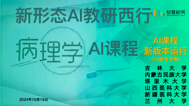 为了持续推进《病理学 AI 课程》新形态AI教研西行(二期)项目建设,2024年10月16日举行了AI课程新版本运行培训会。来自吉林大学、内蒙古民族大学、塔里木大学、山西医科大学、新疆医科大学和兰州大学的共约30余位教师参加了此次培训。