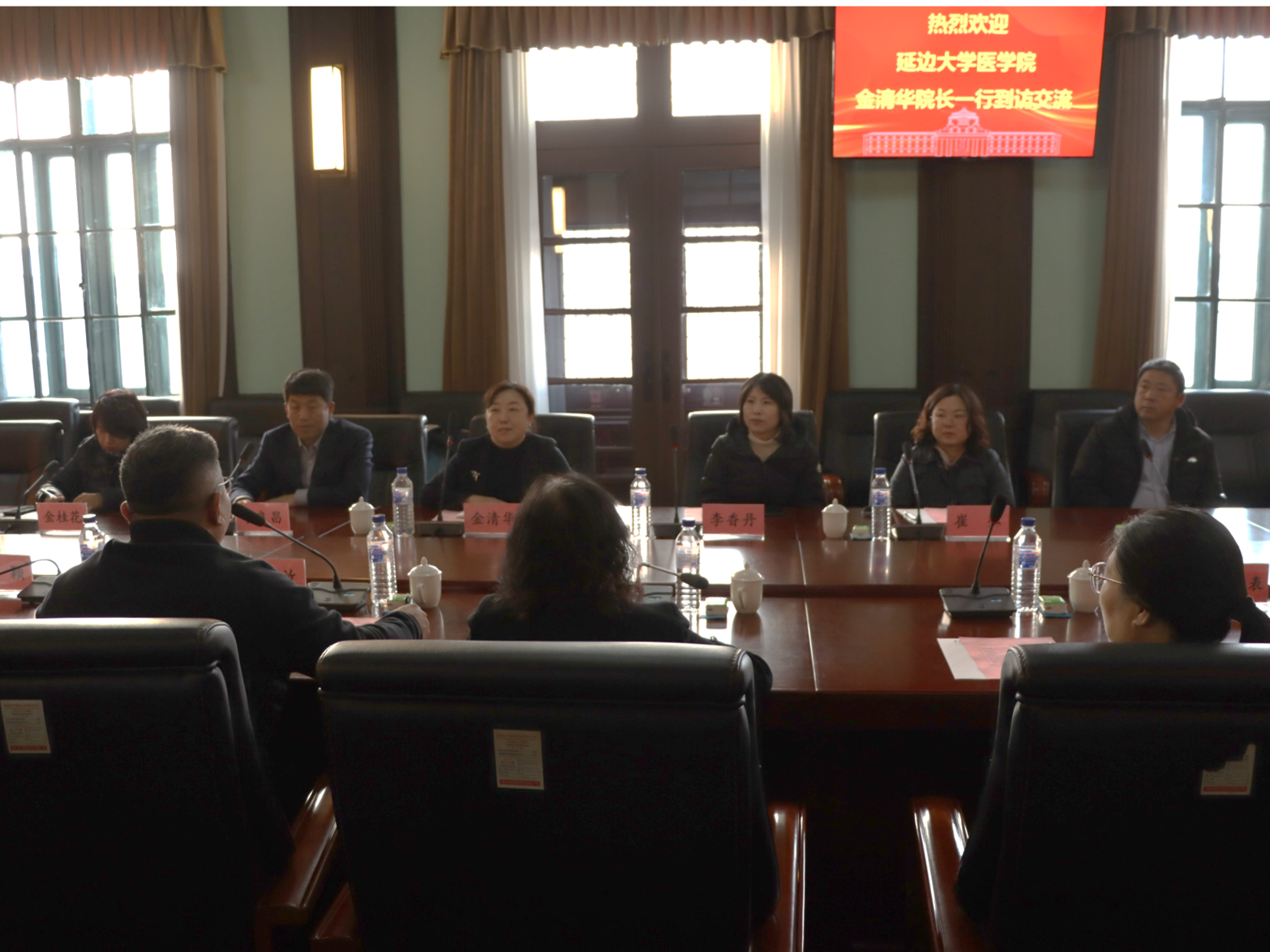 11月28日下午,延边大学医学院院长金清华、副院长李良昌、微生物与免疫学实验教学中心主任金桂花、机能学实验教学中心主任崔弘、形态学实验教学中心主任李香丹、解剖学教研室秦向征一行来我院调研交流。基础医学院院长王放、党委书记王晓荣、教学副院长辛颖、教学委员会委员、学系(中心)主任及教师代表参加会议,会议由党委书记王晓荣主持。