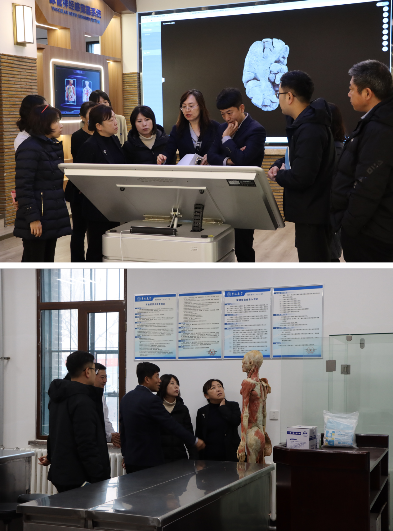 会后,延边大学一行参观了我院基础医学智慧化标本馆、院史馆暨吉林大学医学教育纪念馆以及基础医学国家级实验教学示范中心。基础医学院副院长辛颖结合教育教学实际情况,就日常运行管理、教学科研条件等进行介绍,参观过程中双方就如何更好优化实验室建设与人才培养等问题开展了深入讨论,双方希望未来能够在人才培养、科学研究、高层次人才项目等领域开展更广泛深入的合作。