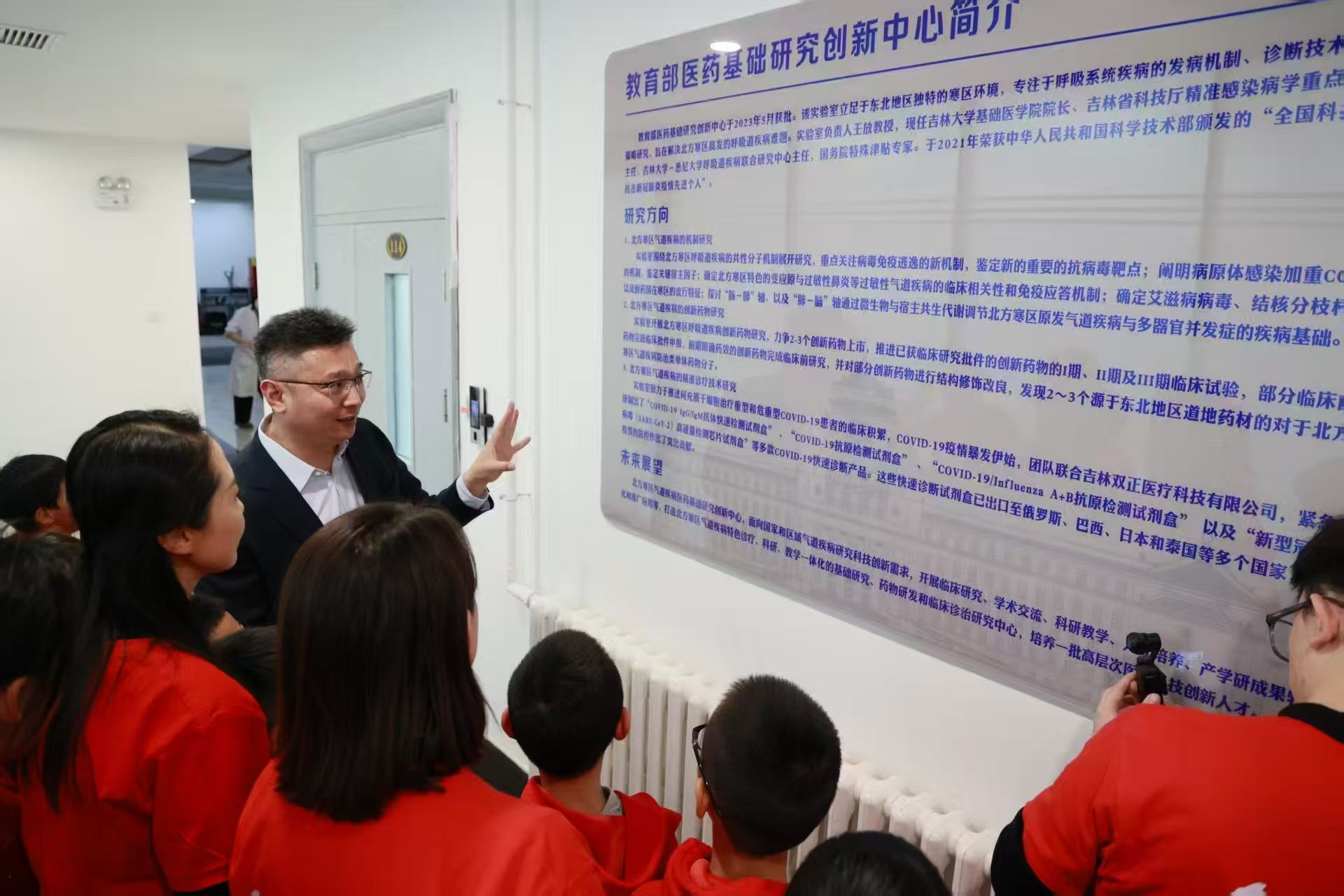 实验结束后,由基础医学院院长王放教授带队,带领孩子们先后参观了学院院史馆、教育部北方寒区气道疾病医药基础研究创新中心人参研究实验室,并走进寄生虫标本展区。院史馆红色革命主题教育生动鲜活,珍贵的史料与讲解让孩子们感悟医学先辈的使命担当;人参研究实验室的前沿科研成果展示,让孩子们领略了医学科研的魅力;学系老师对寄生虫大体标本的细致讲解,则帮助孩子们建立了对人体健康与病原生物的基础认知。