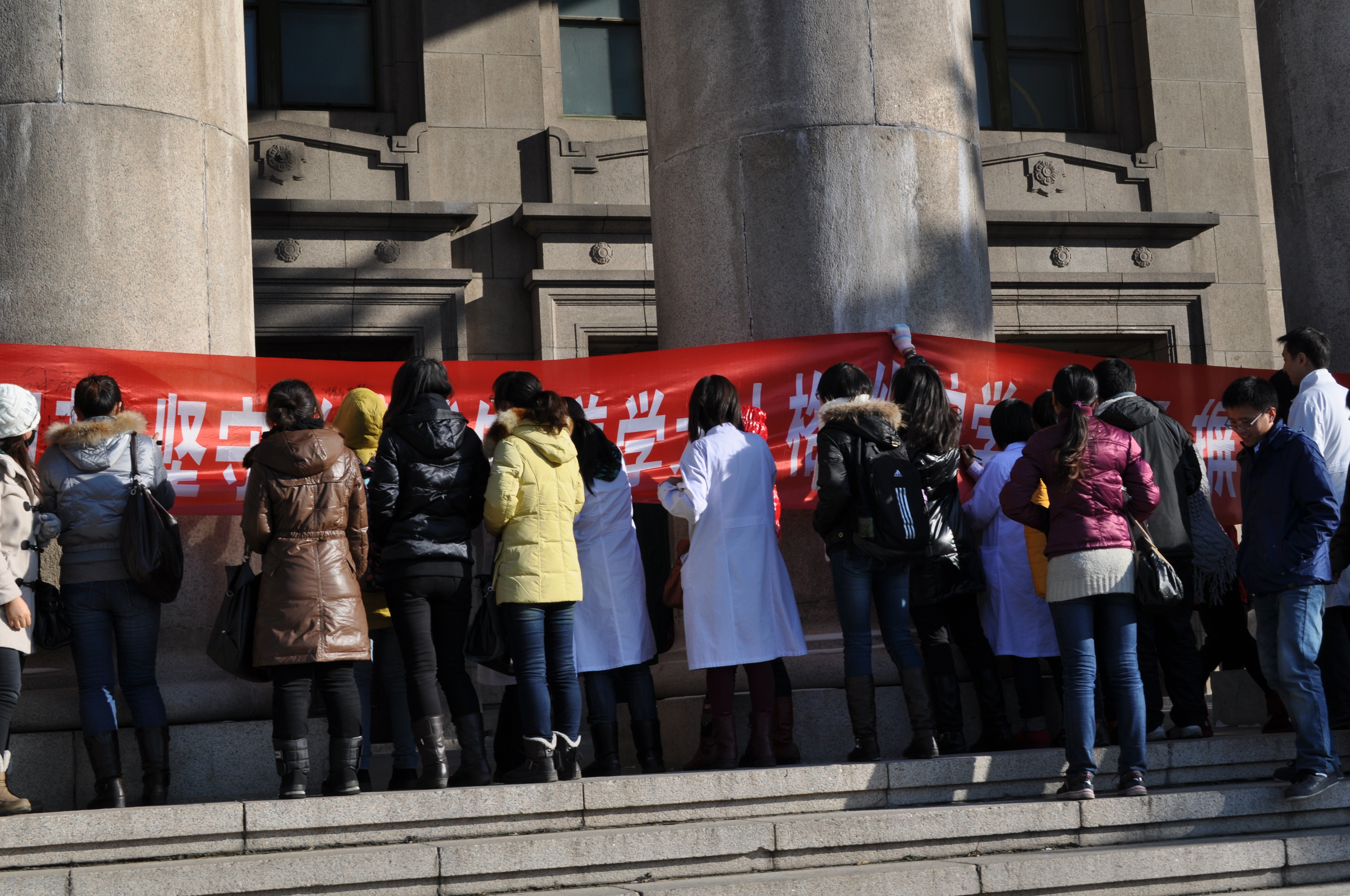 虽然天气寒冷,但是同学们按时到达楼前,积极踊跃地在“遵守学术规范、坚守学术诚信、完善学术人格、维护学术尊严、摒弃学术不端行为”的条幅上签名。并表示通过近期的科学道德与学风建设的专家讲座、学系为单位的集体学习及本次签名活动等,更加深刻的认识到加强学术道德建设的重要性和紧迫性,以后要不断增强自律意识,维护学术尊严,实事求是、严谨治学,踏踏实实地做好科研工作,为取得优秀的科研成果奠定基础。