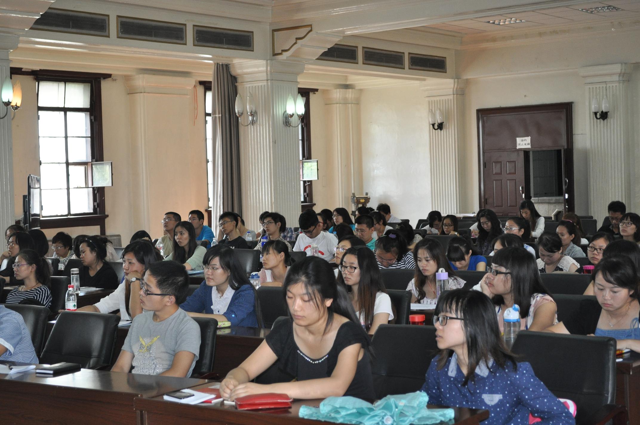 李一雷首先对与会同学的考研动机做了现场调查,接着简单介绍了研究生学位攻读期间的基本程序。进而他结合自己完成的研究生教学改革项目《医学研究生公共课课程体系建设》的内容,依据国内17所医学院校研究生课程体系的调查结果,从课程总量、开课模式以及学分要求几个方面做了深入的分析。他说研究生教育所要达到的目的应该是让学生通过学位课课程设置的特征、教学模式的转变的感悟,完成从具有创新意识到具有创新能力的转变,以基本理论、基本方法、相应领域前沿进展为核心完成进课题组前的相应知识储备和科学思维的准备,并将其转化成创新成果。他结合研究生毕业论文的相应要求提出研究在学期间不仅要完成知识的积累,更要注重团队合作精神的培养,学术道德水平的提升。他以独特的视角从生活和学习两方面向同学们深刻剖析了如何做一名合格的研究生,怎样度过研究生期间的学习生涯才有意义。