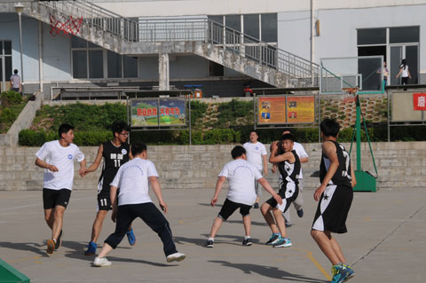 2015年5月12日4点30分,“陕西电子信息职业技术学院师生篮球友谊赛”在学校图书馆篮球场举行,学院党委史军胜书记、工会杨瑞卿主席、学生处田志岗处长和学院老师、学生代表们来到了比赛现场观看比赛,全场活动井然有序。