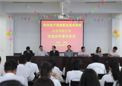 5月27日下午,我院与日本关东学园大学交流合作签字仪式在教学楼1121会议室举行。日本关东学园大学校长羽田亨教授,日本关东学园大学国际交流中心主任远山大辅,西安市人民对外友好协会理事李俊峰博士,院党委书记史军胜,院理事长、常务院长穆耀辉及相关部门的负责人和学生代表参加了此次活动。