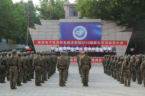 8月31日上午,我院2015级新生军训动员大会在1号教学楼前广场举行。院党委书记史军胜,院理事长、常务副院长、党委副书记穆耀辉,副院长夏绘秦,院工会主席杨瑞卿及各部门负责人、全体教官和2015级新生参加了动员大会。大会由学生处处长田志岗主持。军训动员大会在庄严的国歌声中拉开了帷幕。