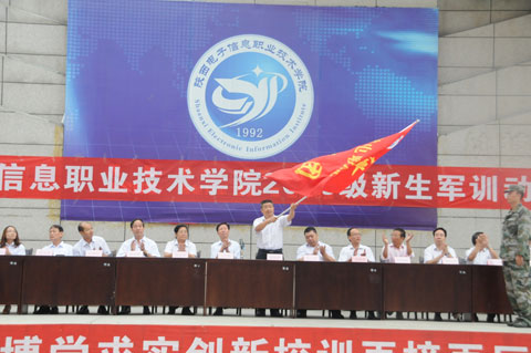 最后,穆耀辉向军训团授旗,预祝同学们学习进步,军训取得圆满成功!