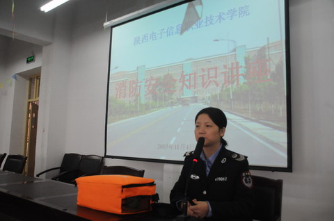 为进一步增强全院师生消防安全防范意识,掌握防火基本知识和技能。2015年11月4日下午,我院特邀了西安卫民安消防教育中心刘娇教官在教学楼1121会议室举行了消防安全知识专题讲座。副院长夏绘秦、张成现及全院教职工和团学干部参加了讲座。