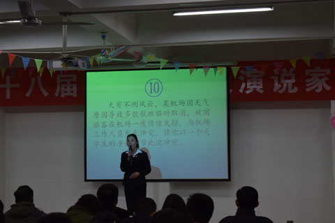 本次演讲比赛经各系部推荐,全院共有43名学生参加初赛,经过初赛、复赛两个阶段经过激烈的角逐,最终有十名优秀选手脱颖而出,成功晋级总决赛。本次演讲比赛以《小胜凭智、大胜凭德》和《你还有多少时间可以浪费》为主题,选手们准备充分,大家分别结合自己的亲身经历做为演讲题目,尤其是即兴演讲环节和董盼、王娟娟同学的双语演讲给大家留下了深刻的印象。最后,本次演讲比赛在一片温馨的氛围中落下帷幕。