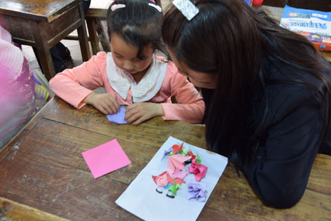 到达学校后,在校领导的热情接待和周密安排下,志愿者按照计划分别走进各年级教室,课堂上志愿者给小朋友们安排了英语、电脑、唱歌、跳舞、体育课程,师生之间积极互动,气氛活跃,教学时间虽然不长,但每一位志愿者都给孩子们带去了自己的爱心和希望。