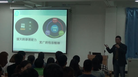 信息工程系王平川老师从什么是“互联网+”、 “互联网+”的提出与国家战略、“互联网+”推动新兴产业地位升级、“互联网+”市场未来发展的十大趋势等四方面给学生作了精彩的报告。数字传媒系李小奎老师以“互联网+”大学生创业指导为主题,以我院三名毕业生创业为实例,深刻讲述了创业为大家带来的实惠及“ 互联网+”在当前创业当中的重要性,使学生们受益匪浅。