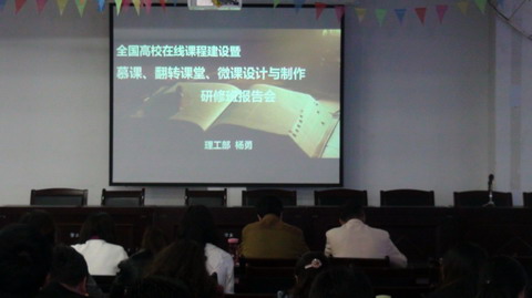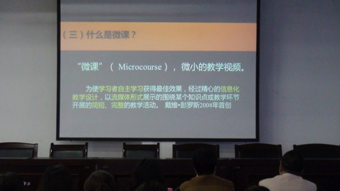 会上,理工部杨勇老师结合自己参加教育部西北高教师师资培训中心组织的“在线课堂暨慕课、翻转课堂和微课研讨会”的学习体会,介绍了什么是微课和微课的特点、微课的设计制作与应用等方面的知识。
