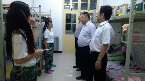 院领导亲切的话语和关心打消了同学们的紧张和不安,关切的问候更拉近了彼此的距离。对于院领导的到来,同学们都表现得非常激动,每到一个宿舍大家都纷纷鼓掌表示热烈欢迎。