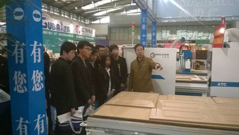 强主任与西安北方数控设备有限公司李明经理沟通后,在同学们的掌声中,李经理对他们公司做了介绍,李经理说:“我们公司以教育软件开发、教学资源建设、数控木工雕刻机、数控激光雕刻机等设备为主体,具有科研、开发生产多种数控设备的能力;公司2010年获得了数雕品牌商标注册权,在全球18个国家和地区设立代理商,在国内有数十个分公司,产品远销美、英等数十个国家”。接着李经理就他们公司参展设备结构、工艺、加工能力及扩展功能做了详尽介绍了,李经理接着说:“同学们现在看到的设备是数控木工雕刻机,采用国产数控系统,具有双柱、双刀库、双主轴结构;具有同时加工多工件能力、能加工各种平面图形等”。最后,李经理:希望我院能与他们企业合作,欢迎我院毕业学生到他们单位工作、发展。李经理用热情洋溢的欢迎词结束了近30分钟的讲解,我院学生再次将热烈的掌声送给李经理。在彼此双双盛情邀请下以合影方式结束了对该单位参观学习。