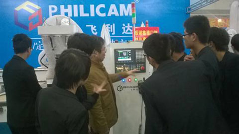 参观完西安北方数控设备有限公司展位后,在老师带领下,同学们先后来到西安恒泰数控设备有限公司、济南数雕数控机械有限公司等数十家展位前,认真学习、仔细听讲。
