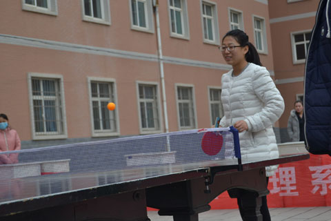 在紧张的策划和筹备后,乒乓球赛的初赛和半决赛在23日下午如期进行。虽然当天凉风袭袭,但这阻挡不住内心的激情澎湃。“八尺绿台闪弧影,两阵方圆展神兵”,球场上,运动健儿们尽情的挥洒着自己的青春风采——那一道道萧逸的倩影,一招招奔放的拼杀。